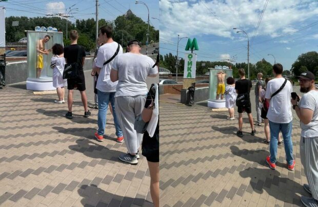 "Столица спасается от жары всеми средствами, Вот, например, на метро Дорогожичи открыли общественный душ. Воспользоваться им могут все желающие", - сказано в сообщении Телеграм-канала"Kyiv LIVE".