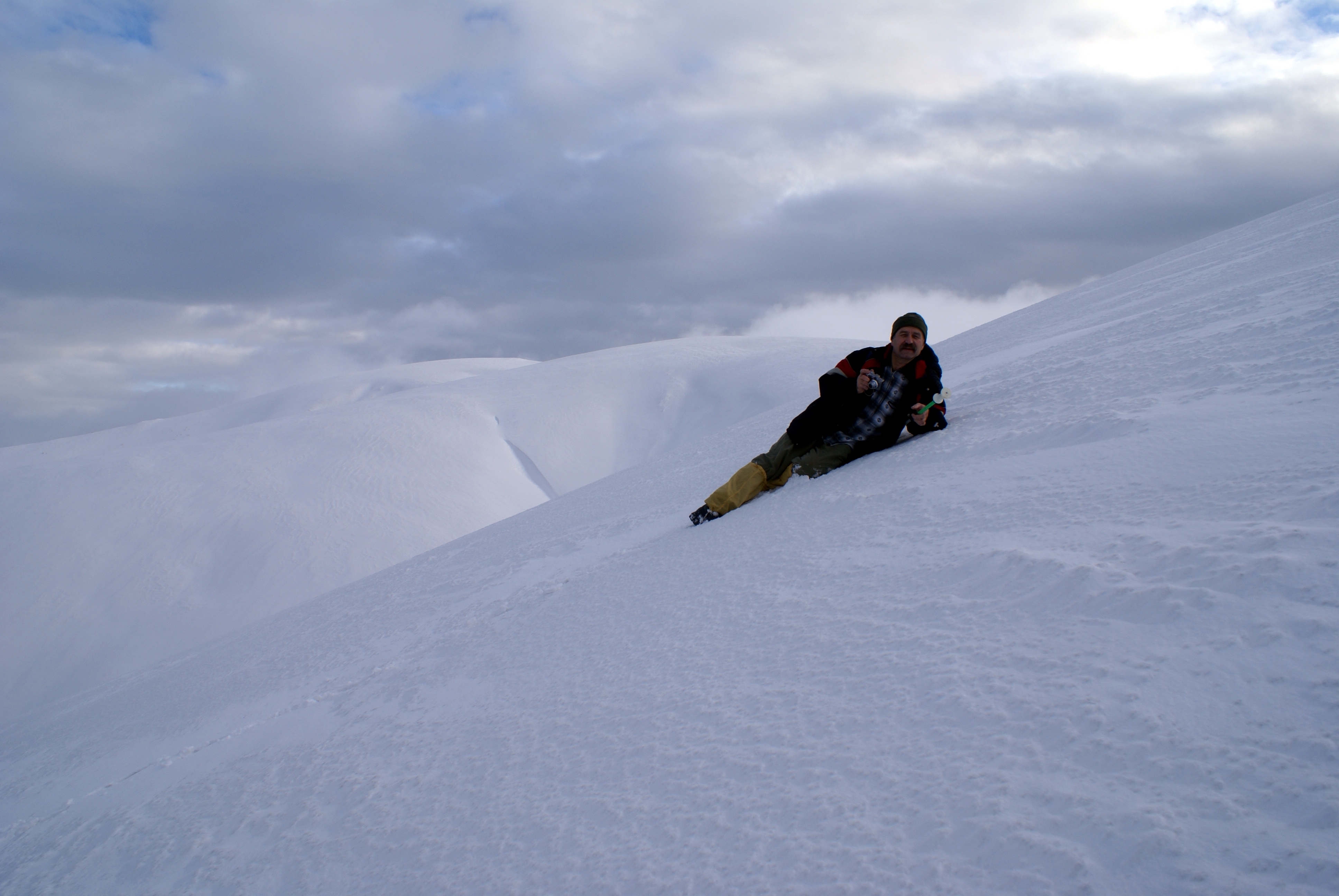 Цікаво, яка глибина того снігу під настом, на якому возлєжіт отой дядько?