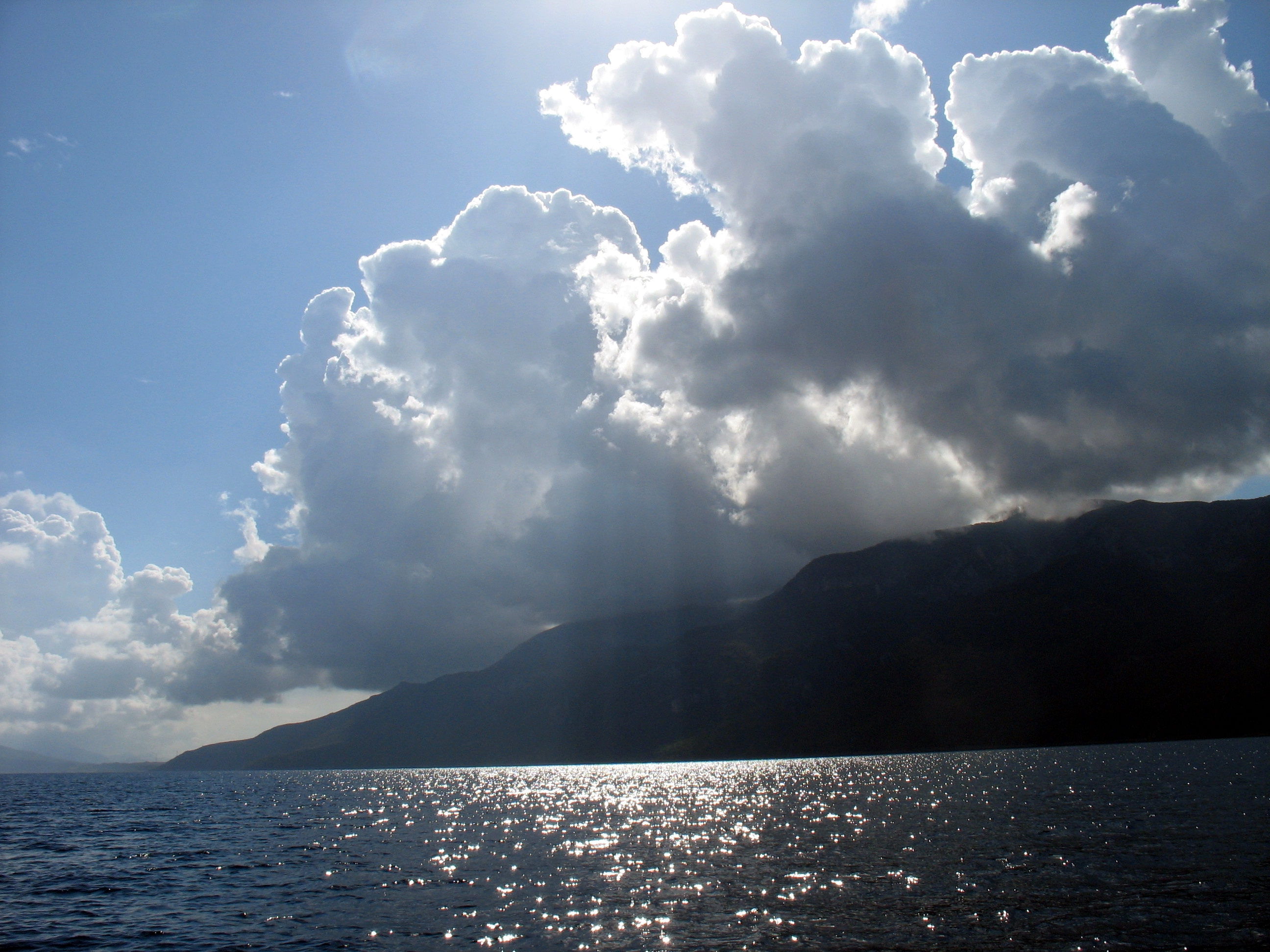 Так пробавились цілий день . Цілий день уникали грозових зарялів, які було видно по усьому небокраю, благо простір це дозволяв. Цілий день благополучно тікали від грози, міняючи курс і пливучи іноді перехресним курсом з зарядом, але під вечір нас таки достало.