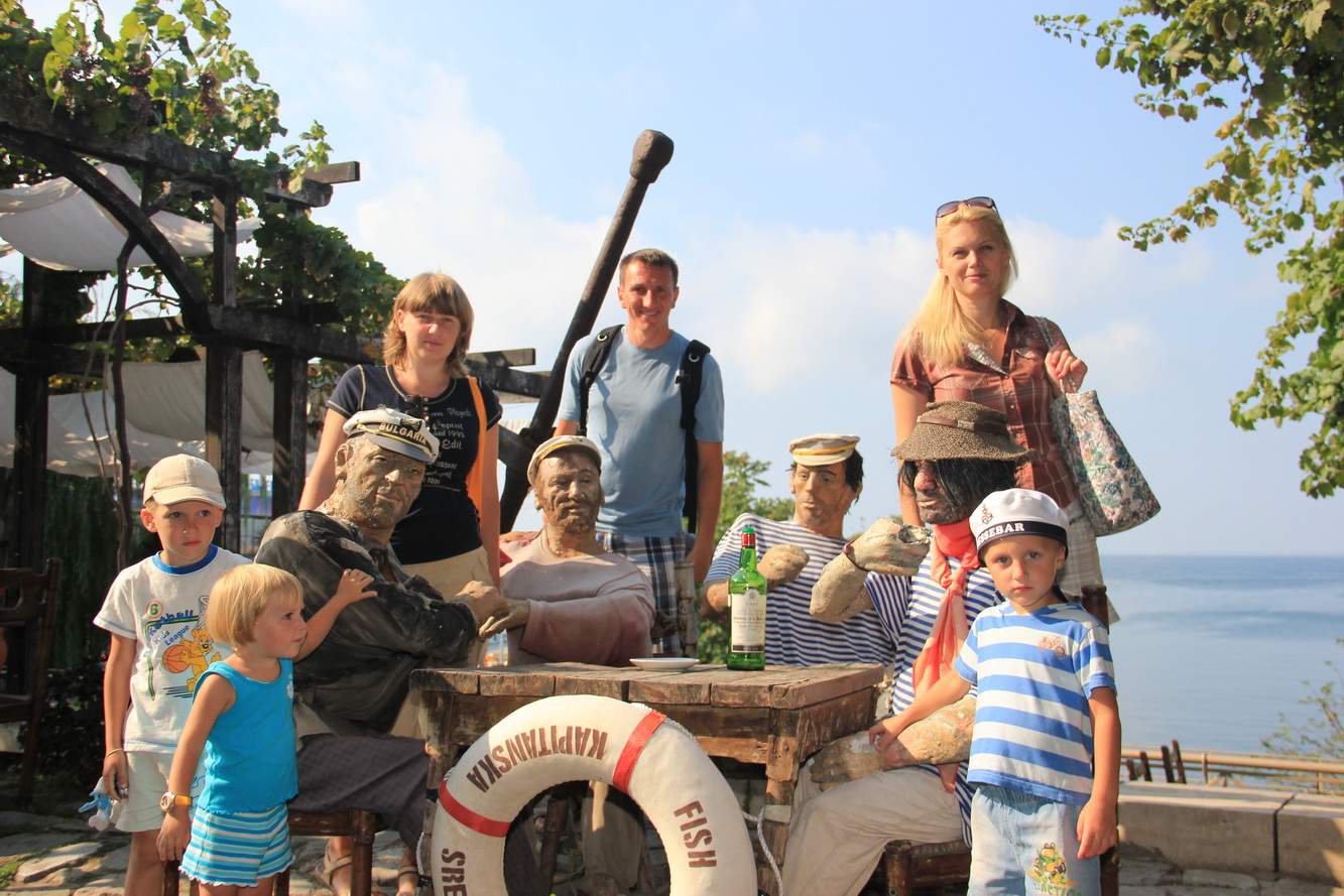 После хорошей прогулки и детского сна снова на пляж. Поужинать решили в ресторане. Предварительные поиски в интернете привели нас в ресторан “Александр”, по адресу Несебр, ул. "Св. Св. Кирил и Методий", № 26. Как пройти: если ехать из СБ на автобусе в Несебр, то нужно выйти на второй остановке в Несебре, и подняться вверх 1-2 квартала (по левой стороне 1, по правой 2) до улицы “Св. Св. Кирила и Методия”, повернуть направо и пройти 1.5 квартала, по правой стороне будет этот ресторанчик. Зная что порции будут большими заказали себе по одной порции салата на двоих, одной порции жареного картофеля с брынзой на двоих, фирменное блюдо тоже одно на двоих, плюс пиво, детям взяли по одной порции картофельного пюре с котлетой. Дима с Аней заказали себе на двоих примерно в том же объеме, что и мы, плюс порцию картофельного пюре ребенку. Еду готовили достаточно быстро. Сказать что было вкусно - не сказать ничего, было очень вкусно и порции действительно были огромными. А детскую порцию пюре я бы и сам не съел, хорошо что официанты что-то напутали и принесли всего 2 порции пюре на 3 детей, они и это не осилили. Кстати мы тоже свою еду не осилили и попросили на вынос. Ужин нам (2 взрослых, 2 деток) обошелся в 25 лев, примерно 150грн, как по мне так очень уж демократично, если учесть что наелись мы до отказа, и еда была очень вкусной.