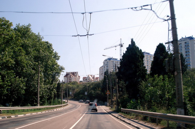Дальше трасса на Симферополь и потом на Алушту отличная (по моим меркам и применительно к нашей стране), а Алушта – Ялта – Севастополь вообще нет слов. Перевал на Алушту прошли на одном дыхании и все с той же скоростью 100 – 120 км/ч. Иногда по пути попадался троллейбус Симферополь – Алушта или Ялта, он, конечно, тормозил движение, но ненадолго, места для обгона достаточно. Учитывая, что это наша первая поездка в Крым, то этот участок дороги вызвал у нас море восторга.