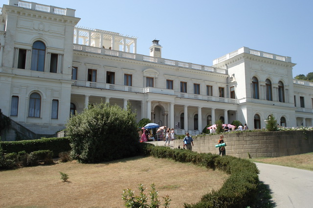 Ливадийский дворец. Фото 2(1) - 2(7). Поехали на такси с Ялты – 35 гр. минут 15 езды по узким улочкам. Дворец красивый, вокруг тоже классно. В 14.00 были уже в Ялте и поехали на экскурсионном автобусе в Воронцовский дворец - фото 1(1) - 1(8). Это уже подальше в сторону Севастополя. Экскурсия стоит 90гр/чел. Нам тоже понравилось. Примерно в 18.00 вернулись обратно в Ялту. Погуляли по набережной, послушали начало концерта. В ресторанчиках на набережной цены достаточно высокие. Заказ минимум 200 гр с человека. Лучше отойти на несколько улиц в сторону, там цены приемлемые – также на четверых вышло до 300 гр. Фото 6(1) - 6(9).