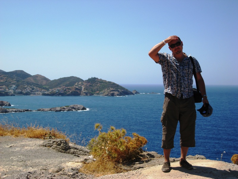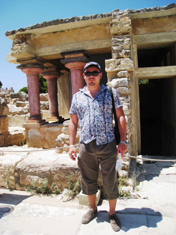 Вышли мы из аквариума а времени час дня. Я и говорю поехали на развалины Кносского дворца тут недалеко, там и перекусим. Сказано сделано, грузимся, включаем навигатор ехать чтото около 17 км, едем через проселки, дворы выезжаем на асфальт еще пару км и тут навигатор говорит -"резко сверните вправо" выглядываю там обрыв метров 15 глубиной кустики чахленькие, выхожу из машины смотрю а там паралельно дороге тропка шириной метра полтра с уклоном градусов 60-70. Матюкнулся поехал дальше, вокруг вообще никаких следов цивилизации не говоря уже о живой душе которую можно было попытать на предмет дороги и тут навигатор (мобильный) прошально побиликал и отключился зарядка только от 220 в номере осталась. Ну думаю сейчас заедем Сусанин обзавидуется. Проехали еще километров 8 смотрю парковка, магазинчики и спецназ стоит с щитами касками и прочими атрибутами. А полицейские не в пример местным обязаны знать английский, подхожу здороваюсь сую ему карту и говорю где я сейчас нахожусь и как мне проехать к Кносскому дворцу. В ответ улыбка в 32 показывает вот 5 метров направо по ступенькам вниз и 10 метров налево вон касса билеты продает