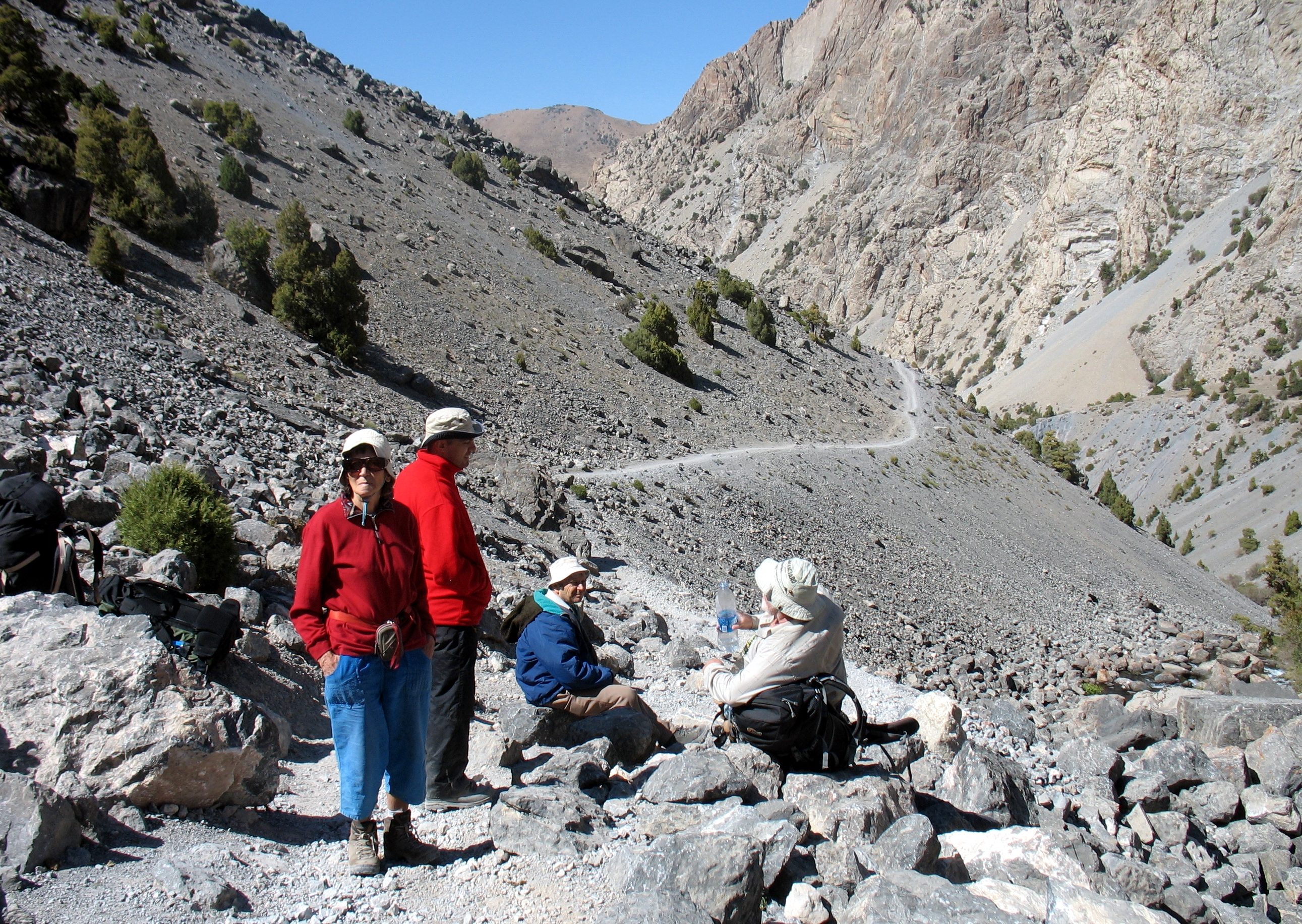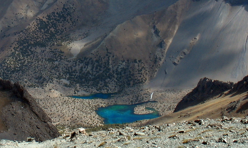 Добре натоптана, «народна» тропа йшла через 3 ступіні стародавніх льодовикових морен і завалів, кам`янистими осипами до величезної котловини, в якій сховались живописні озера. Це місце у Фанах мабуть найбільш популярне у туристів, навіть цього разу, не в сезон, ми зустріли мандрівників із декількох країн (французи, голландці, іспанці, ізраільтяни і поляки).