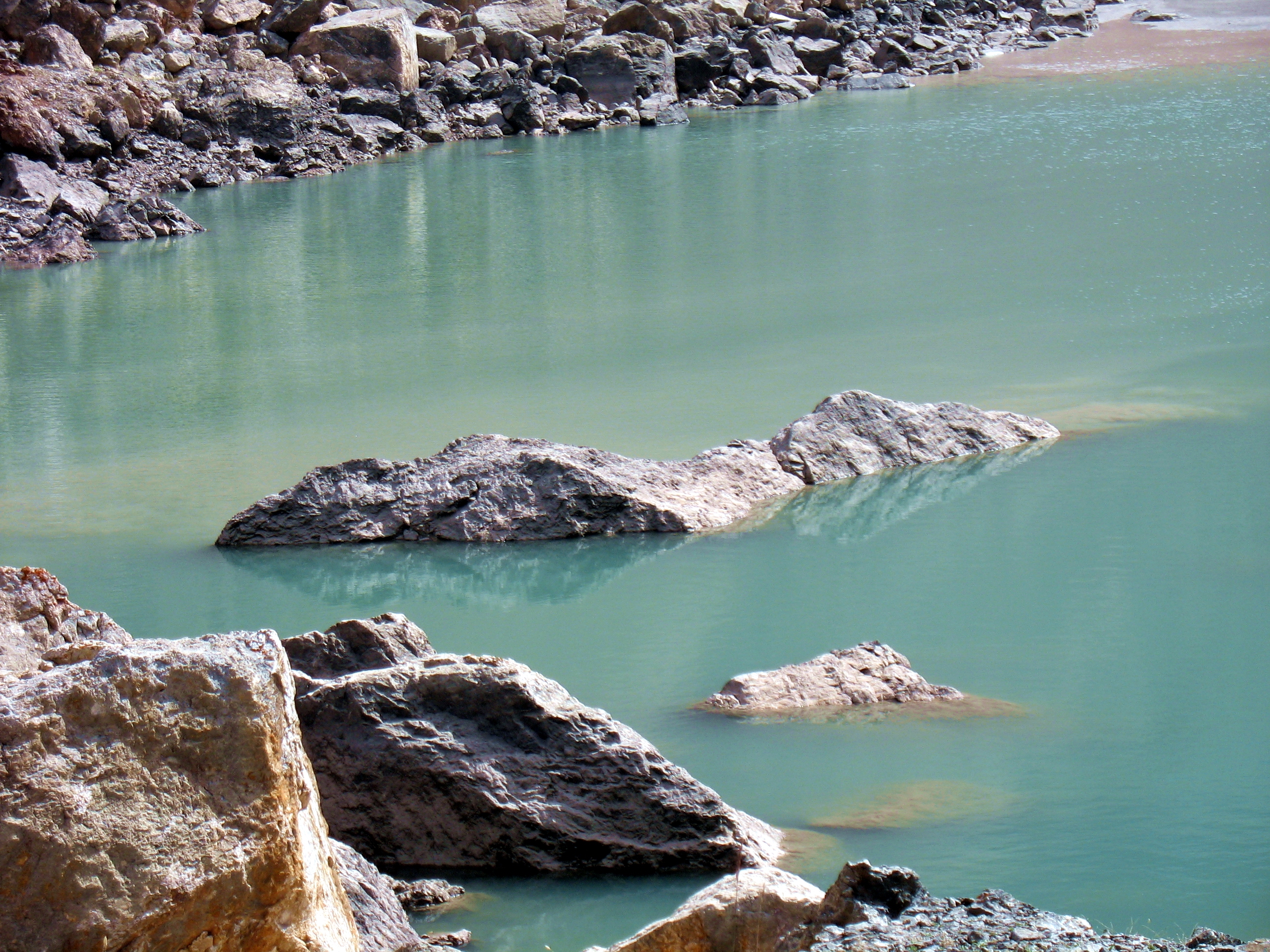 Але загальний колір все той же, що і в інших фанських озер – зелено-бірюзовий. Мутність їй надає льодовик, який наповнює озера своєю талою водою з мікроскопічними шматочками гірських порід. Далі ця вода фільтрується в осипах і вже нижче за течією стає зовсім прозорою.