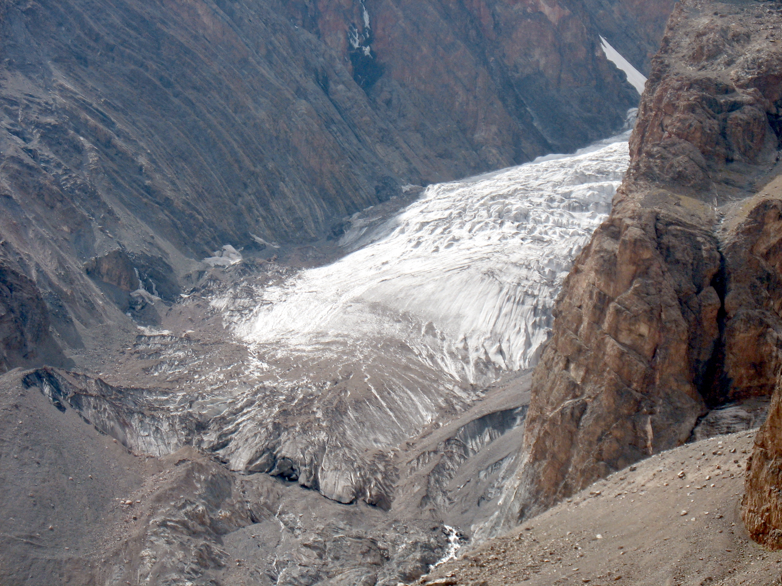 До Мутних озер.Наступного дня було заплановано радіальний вихід без рюкзаків до високогірного цирку, в якому розмістились так звані Мутні озера, навкруги яких знаходяться найвищі п`ятитисячники Фанських гір (пік Чимтарга, пік Енергія, пік Замок…).