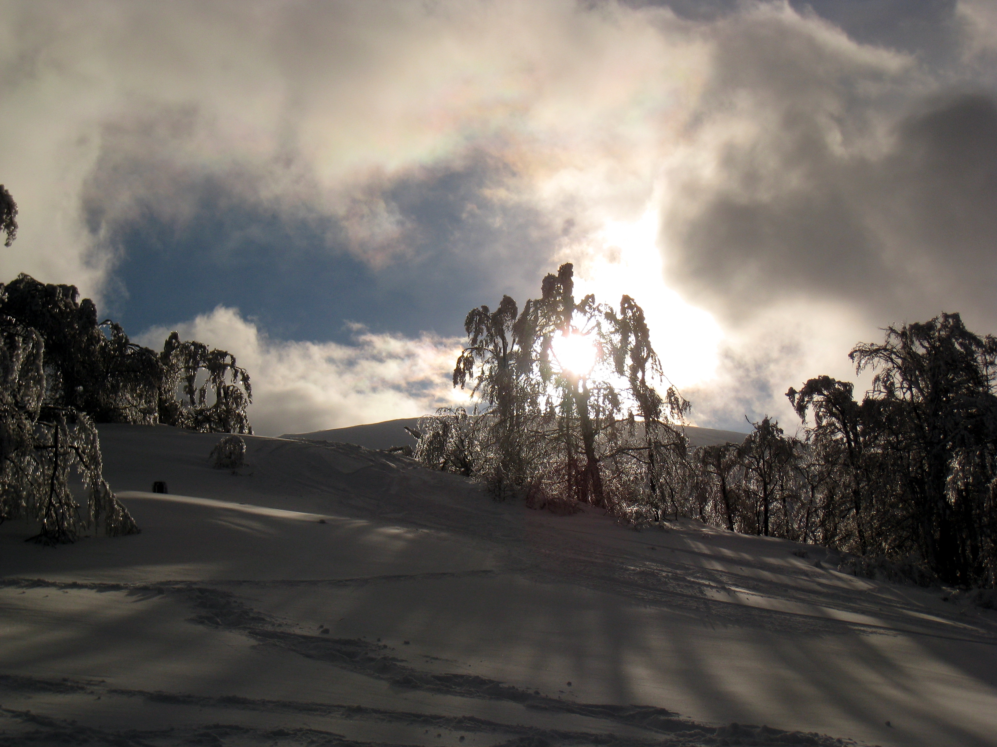 Йдемо цілиною. В лісі сніг м'який, провалюється. Передній потихеньку "топче" доріжку, благо у снігоступах йдеш, неначе по грунту, ноги пірнають у сніг не вище колін. До речі, одного разу вирішив у ботинках сходити "до вітру" під ялинку – провалився майже з головою – під гілками снігу мало того, що багато, так він ще й не влежаний. Правда було це на Північному Уралі, але то вже не важливо