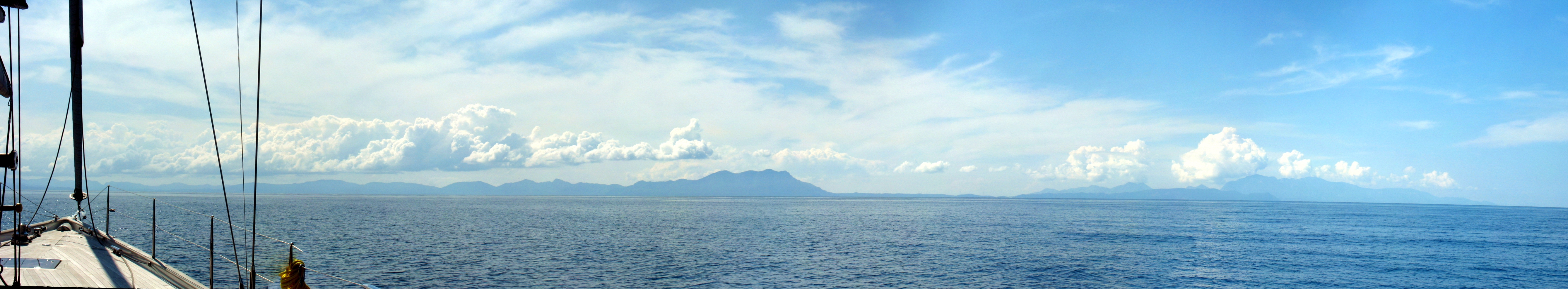 Отже повернули лівіше в протоку Кос, вітрила дозволили йти під кутом до вітру десь градусів 10-15. Це – курс бейдевінд. Потроху вітер почав стихати.