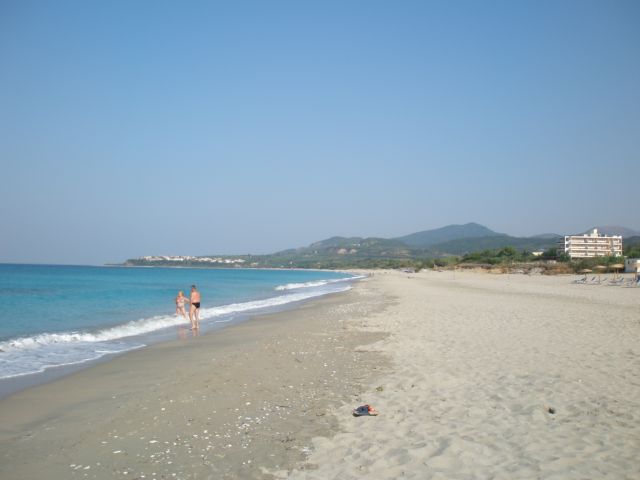 Переночевав в Софии утром отправились в Грецию. Таможню прошли минут за 10 без особых проблем. Въехав в Грецию, сразу ощущаешь еще лучшее качество дорожного покрытия и большое наличие автобанов. Проехав через Салоники без остановок, приблизительно около 14.00 мы приехали на полуостров Кассандра в поселок Калифея. Поселившись в отеле Pollini Beach, 4* провели там 6 незабываемых дней. Отличный отель с хорошими номерами. Питание завтрак и ужин – шведский стол. Кормили нор-мально. На ужин напитки платные. Последние три дня мы напитки приносили с собой (платить по 4 евро за 1,5 л бутылку минеральной воды очень дороговато, банка пива – 3 евро).