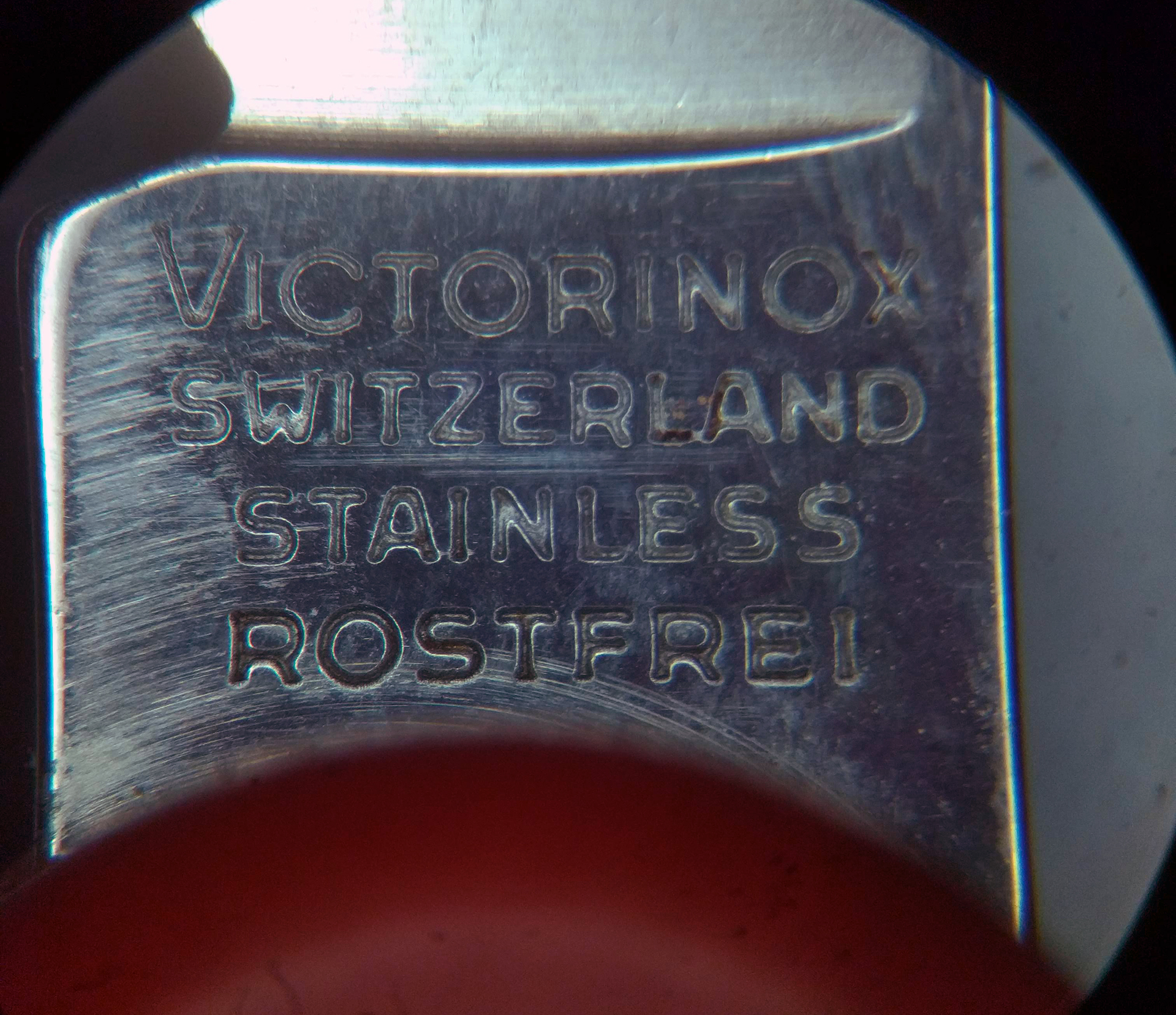 Сначала вроде все нормально было. Как начал переходить на более тонкие камни, начал пробовать рез. Вижу что-то не то. Смотрю в линзу на кромку, вижу микровыкрашивание. Прохожу еще раз, оно все равно проявляется. Короче, поставил микроскоп. И тут...