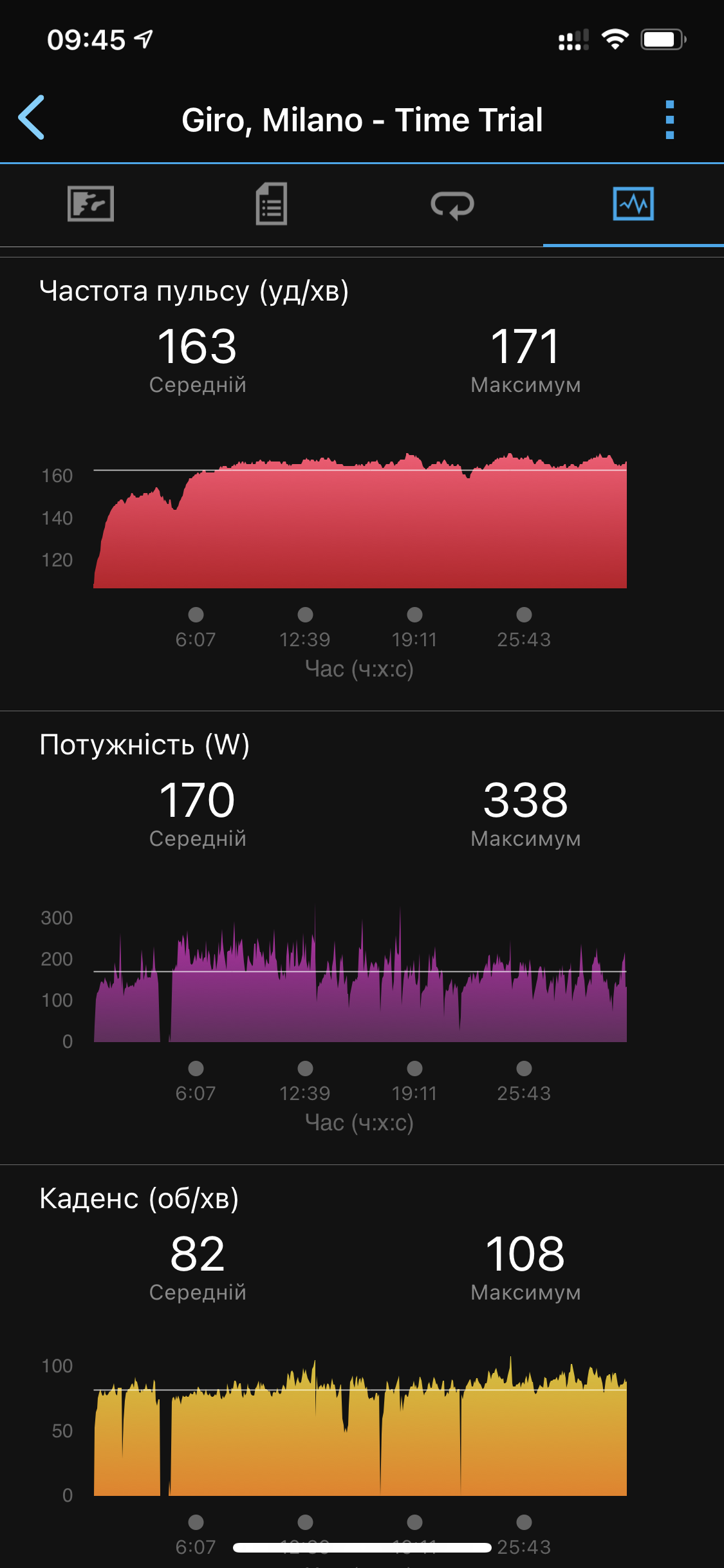 Из минусов: нет сопротивления воздуха, и поэтому пот льется ручьями (пришлось остановиться и сходить за полотенцем), но это решаемо покупкой рециркулятора. По-моему, скорость малость завышает, или она повыше из-за того, что только одно колесо крутит идеально ровный ролик тренажера. Но, я на нее и так никогда не смотрю. Пульс, каденс и расчетная моща.