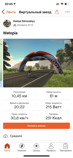 Проехался в Zwift. Поинтереснее. Сам станок не так резко градиенты притормаживает, а следовательно - ехать покомфортнее. Повеселее видеть других на дороге, получать ачивки. Мотивирует. Ну и риск постоянно понаваливать. Я пока в обучении. Нужно проехать 25 км, чтоб дали месяц бесплатный и открыли локации, кроме Ватопии. Очень интерактивно. Постоянно всплывают инструкции. Постоянно на процессе сосредоточен. И еще плюс: поставил на appleTV ее, на телике 49’’ классно ехать.