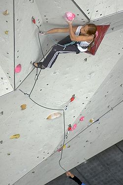 Если сверху зафиксировать веревку нельзя, то скалолаз лезет с нижней страховкой, используя временные точки страховки - закладки, френды или камалоты - особые приспособления, которые вставляются в щели в камне и фексируются там. И повисая на временных точках страховки вбивает шлямбура. Вот хорошая
