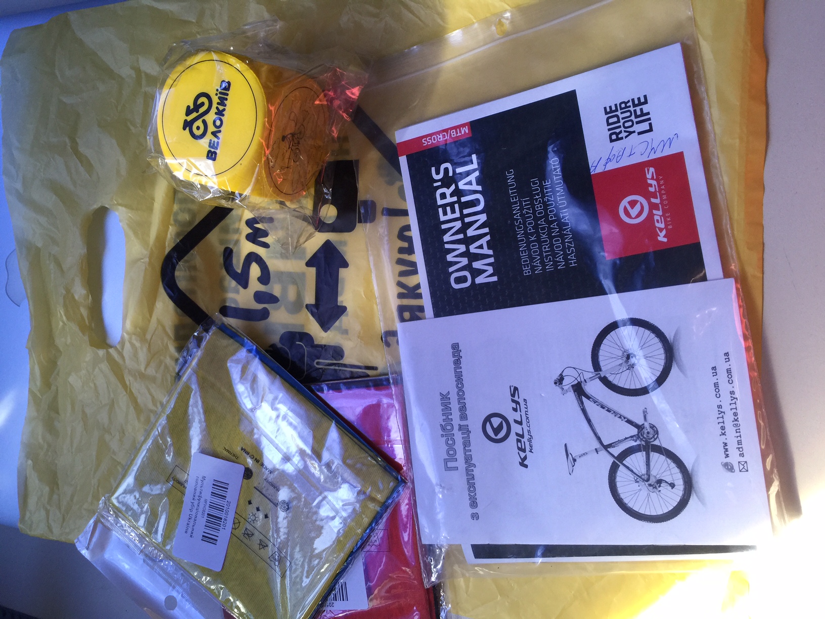 - Ну и подарки от Велокиева. Думаю, малой зацепит красно-черный бафф. )))