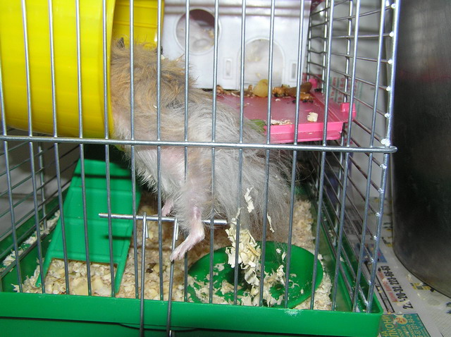 Наш хомячило продолжает вести исключительно нехомячий образ жизни - ест мясо и курятину, выбрасывает непонравившуюся ему еду из клетки на пол, даёт лапу, на фразу "иди в будку" реагирует правильно - идет и прячется в своём домике. Недавно пил пиво. После этого медитировал (сидел посреди клетки и раскачивался из стороны в сторону). Потом валялся по клетке как тряпочка, отсыпался. Потом его с бодуна на хавчик пробило - тряс клетку, требуя еды, согласился на жаренную свинину. При появлении кого-то из нас рядом с клеткой выскакивает из домика и просится поиграться. Думаем: это у нас какая-то особая порода хомяков или с экологией что-то невпорядке?