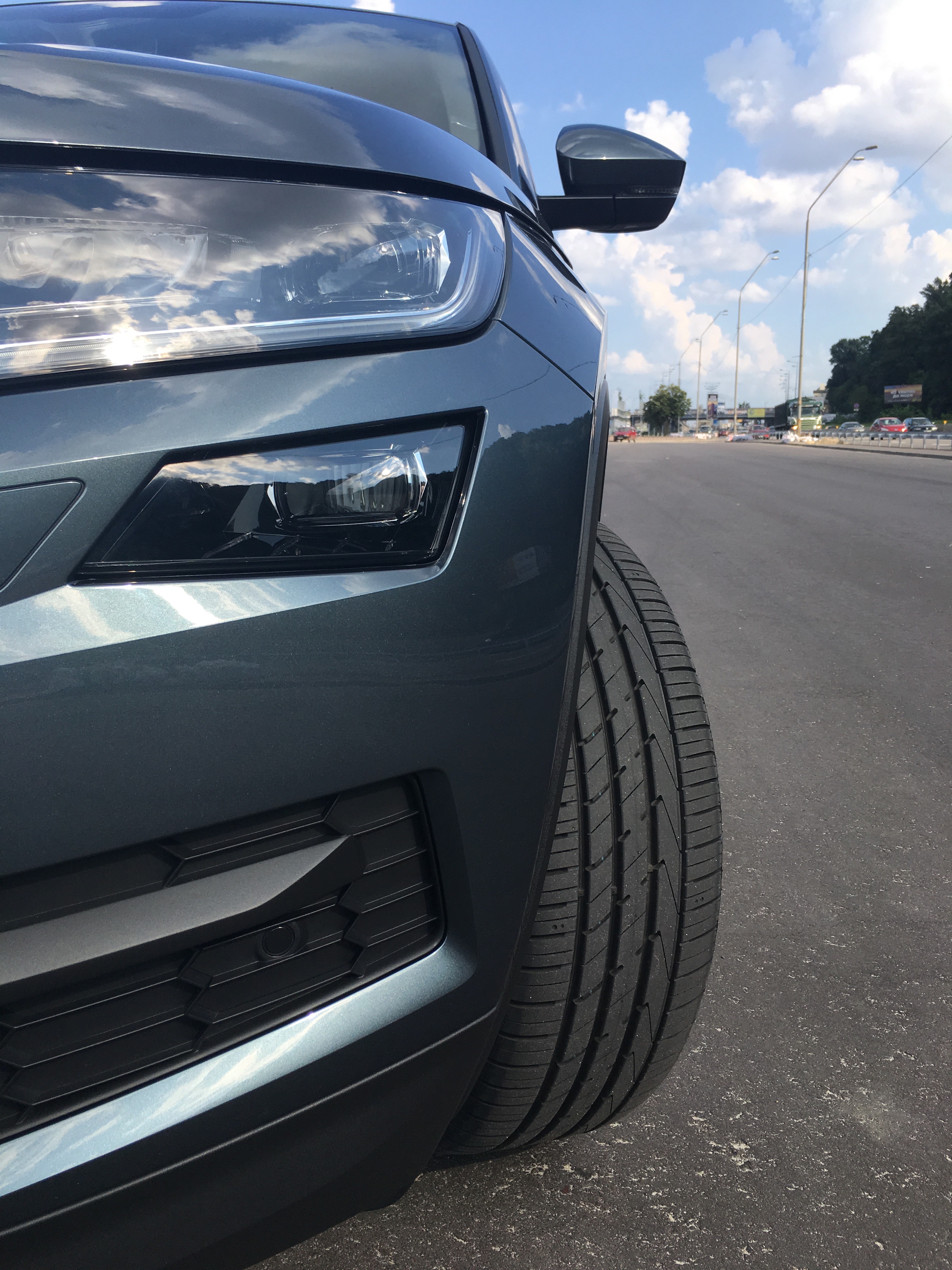 Подвеска отрабатывает отлично, я даже не понял, или из-за новизны авто, или дороги на Западной реально подмарафетили, но ехалось очень приятно от самой границы. Кстати, кольцо, что перед В-В полностью переложили. Теперь там трасса по уровню не хуже автобана. Сама подвеска у Кодьяка жестче, чем у Кашкая+2. Скорее даже не жестче, а с более коротких ходом. Я читал об этом и был готов, так что уже привык. Зато рулится круто, как Пассат Вариант. Чуть приноровиться стоит к ассистенту движения по полосе, и к тому, что радар реагирует даже на медленно ползущих мопедистов и пытается оттормаживатья. Но, то такое, пару раз - и привыкаешь, как реагировать.