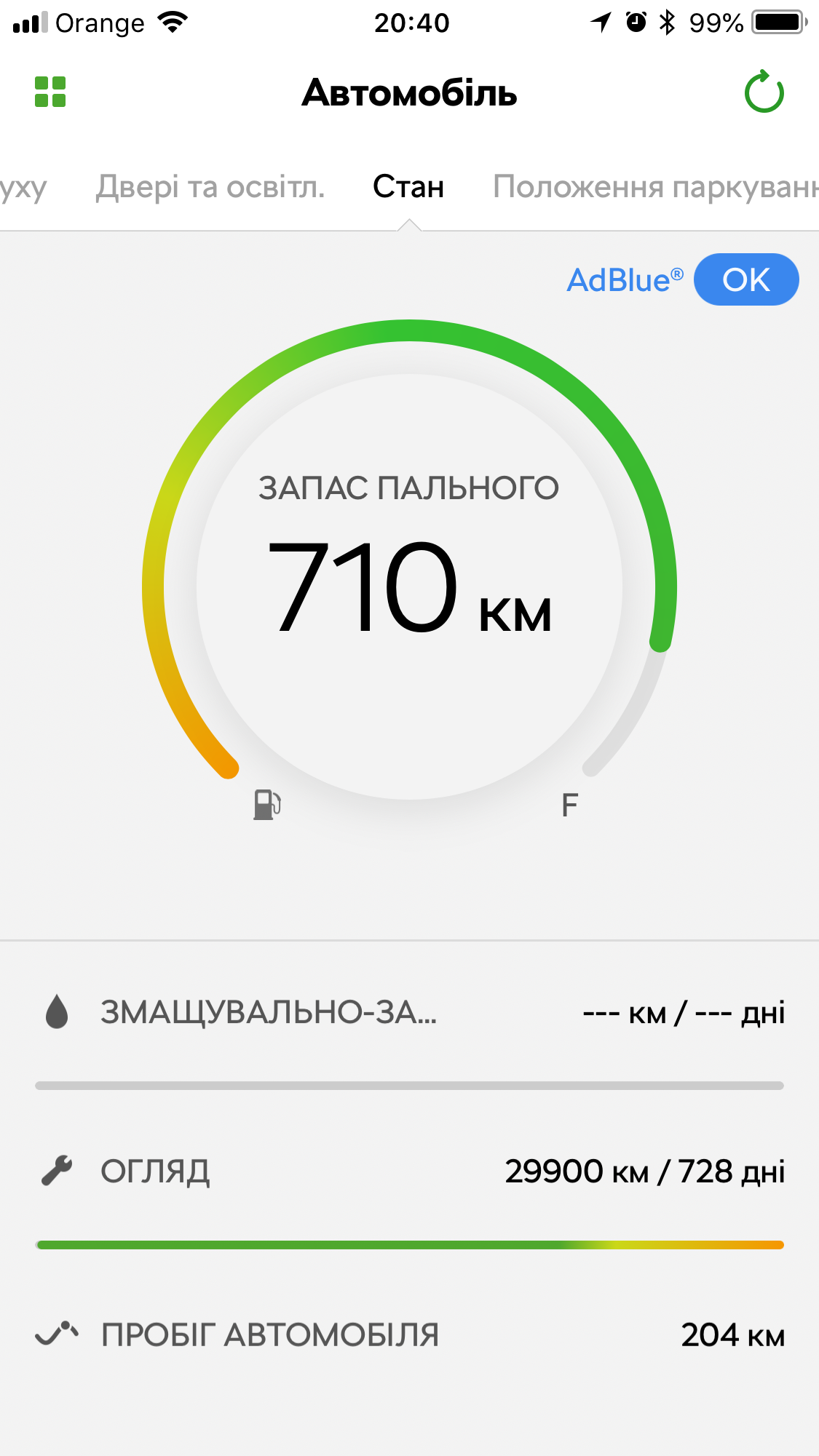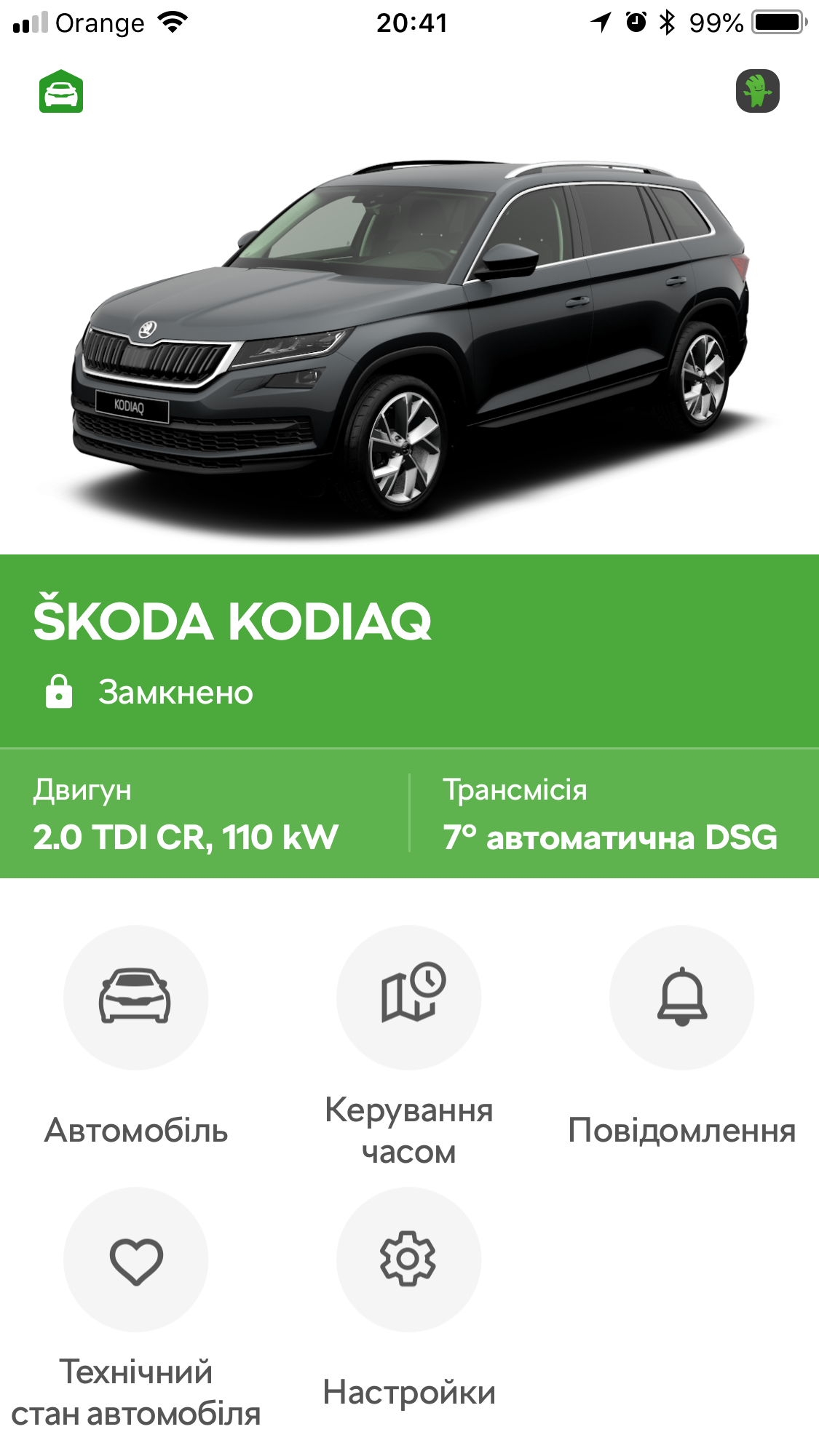 Очень удобное приложение Шкода-коннект. Помимо просмотра статуса авто онлайн можно получать СМС и мэйлы, управлять сигланизацией, замками, привязать машину к парковкам и задать расписания стояноу и пр. дистанционно. Такая себе GSM/GPS сигнализация.