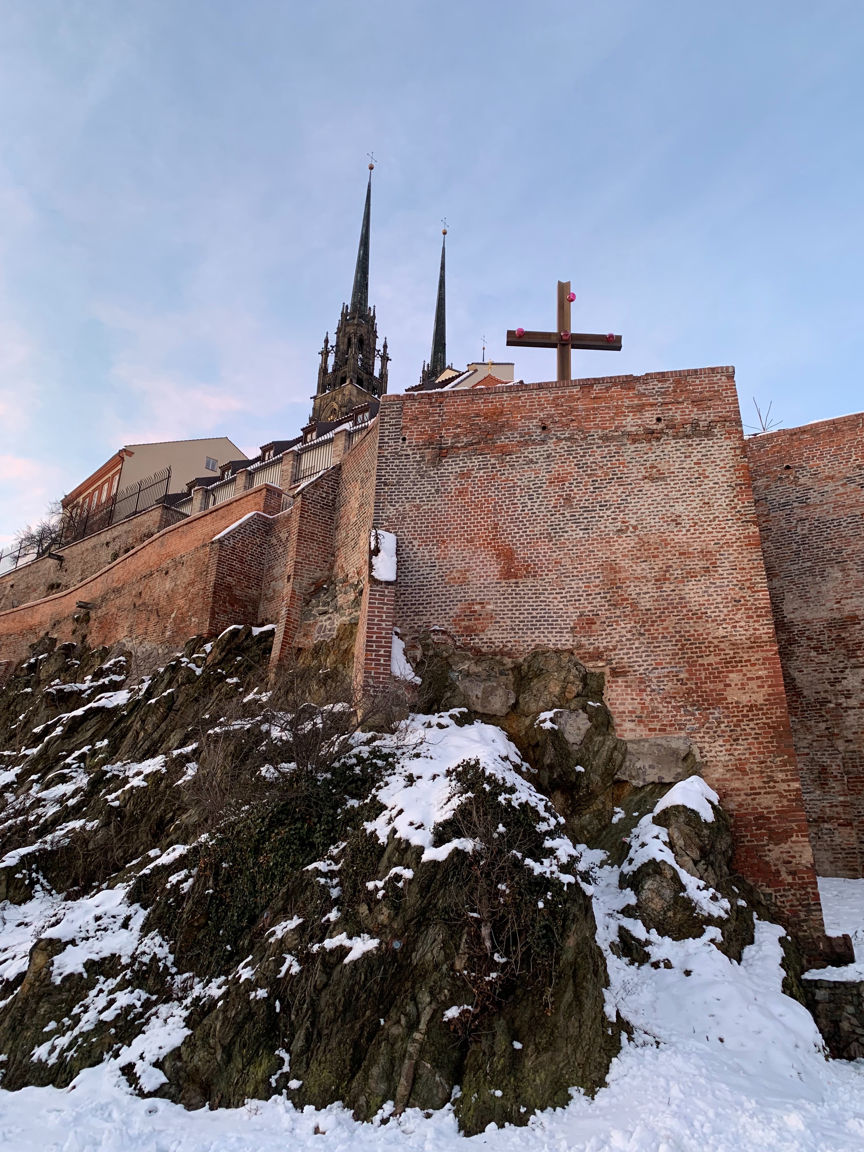 Вечерком размялись по холмам Брно и заслуженно отведали местного пива под традиционное колено. Кстати, жилье сняли у семьи из Запорожья через один из сервисов. Они тут уже 10 лет живут и работают. Пакинг в цокольном этаже дома, дом под самой горой с собором Петра и Павла.