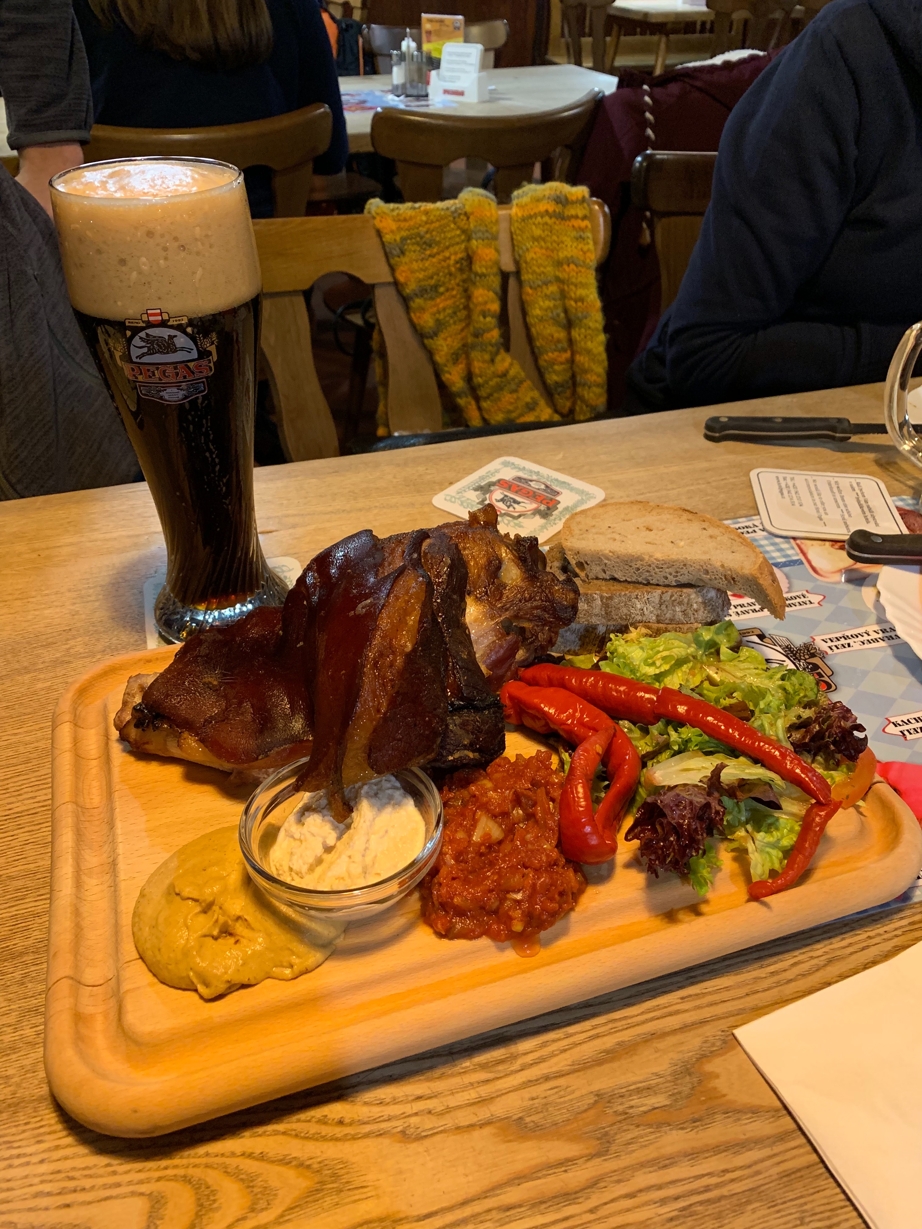 И вот та самая случайность, которая заставила сердце биться чаще от приятных воспоминаний! Гостинный двор с потрясающе вкусной едой и темным пивом из королевской пивоварни.