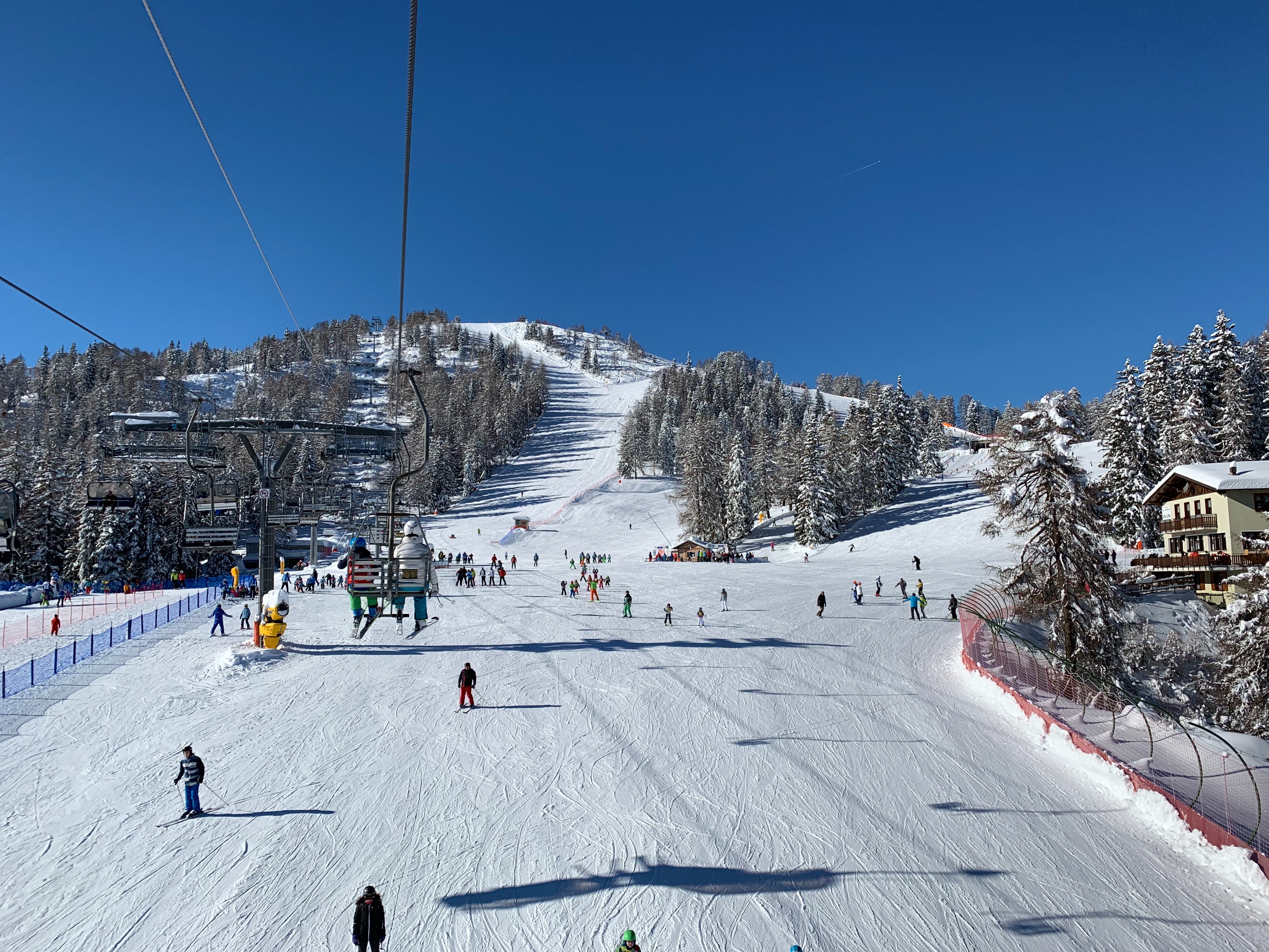Пока Коди мирно сопит на парковке под отелем в деревушке Димаро (мы даже не знали, что будем жить именно в ней, что весьма позабавило старшего), мы третий день укатываемся в хлам. У младшего даже что-то типа высотной болезни сегодня приключилось, но завтра снова в бой! Когда одни друзья советовали начинать кататься сразу в хорошем месте, чтоб поехать и заболеть, я послушал других друзей, выбрав эконом-вариант в польской Бялке в период рождественских каникул прошлой зимой. В итоге, у меня за полтора дня катания по искусственному снегу под дождем - парочка падений и повреждение колена, которое потом 3 месяца лечил, испортив и велосезон 2018. Малой не научился, жена тоже, старший, правда, поехал, и на компанейском Ски-викенде в Щирке он уже штурмовал черные трассы. Я же пытался хоть что-то вспомнить из того, чему учил инструктор в Бялке и боясь за колено, особенно при вылетах на ледяные поля. Щирк - классный, 40-45 км трасс, новая инфраструктура, в которую влили мощно словаки пару лет назад, но на выходные туда лучше не лезть: народу море, пробки дикие... Короче, если бы не оказия в Щирк и хорошая компания коллег да успехи сына, я бы забросил идею открыть для себя зимний спорт. А ведь так мечталось, так хотелось... И вот таки рванули в Доломиты. С польским организатором, на семейный обоз, приуроченный к мазовецким школьным каникулам. Малой с польским инструктором в детской школе, старший - в группе для середнячков маньячит по трассам супергиганта и остальным черным местам со своим инструктором, который на год старше его, мы с Ирой в бегиннерах с парой полек и парнем-англичанином, который работает в Польше и пару дней назад впервые встал на лыжи. Тичер у нас итальянец с изумительным английским и просто гений педагогики. За три дня его стараниями мы уже гоняем на 40-45 км/ч и почти освоили повороты на параллельных лыжах. Сам курорт - это сказка. Мы взяли скипасс не на весь комплекс 150 км (Folgarida-Marilleva + Madonna Di Campiglio) трасс (их там под 70), а на одну его, ближнюю (первую) часть. 38 трасс, высота максимально 2150 м над уровнем моря, но главное - до отеля 4 минуты. Трассы широченные, при довольно большом количестве людей (больше 2-х минут все равно не стояли к подьемникам), они пустые. Подготовлены идеально. После прошедших накануне снегопадов имеем местами до 1,5 м покрова. Что бросается в глаза - обилие детских школ и мелюзги в них: польские, итальянские, румынские. У нас в обозе есть малята по 3 года! Приезжаем на гору к 9-00, успеваем до встречи с инструкторами разогреться и вспомнить вчерашние трассы. С 10-00 до 12-00 муштра, 12-00 - 13-00 ланч там же с детьми, которых нам привозят. Успеваем за 20-30 минут покушать и со старшим еще закрепить то, что учили до обеда, с 13-00 до 15-00 снова муштра. Вечером всякие развлекалова и анимации для детей и взрослых, в том числе и теория, правила поведения на горе, безопасность. В четверг будут типа соревнования внутренние, в пятницу награждения и призы для детей. В общем, заболели мы тут этим спортом окончательно. Поехали в прямом и переносном смысле. Старшему пообещал персональные буты купить на следующий год. Ну и правы были те друзья, которые советовали начинать сразу в хорошем месте. Хотя, продолжать будем в аналогичных.