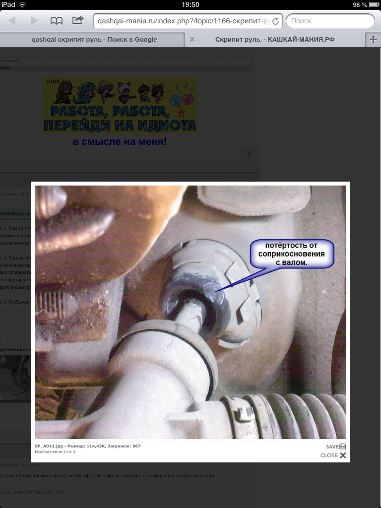 Defender, в случае с той горловиной пыльника рулевого вала из-за накопившейся пыли резина горловины клинит и рулевой вал тянет её за собой при повороте, закусывая кусочек резины. Получается звук типа "хр-хр-хр". Потом этот кусочек со временем отрывается, как на фото выше, туда попадает ещё больше пыли и грязи и звук становится всё более угрожающий, по нарастающей.