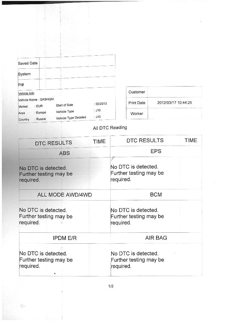 - Результаты инициальной компьютерной диагностики узлов и систем Кеши.