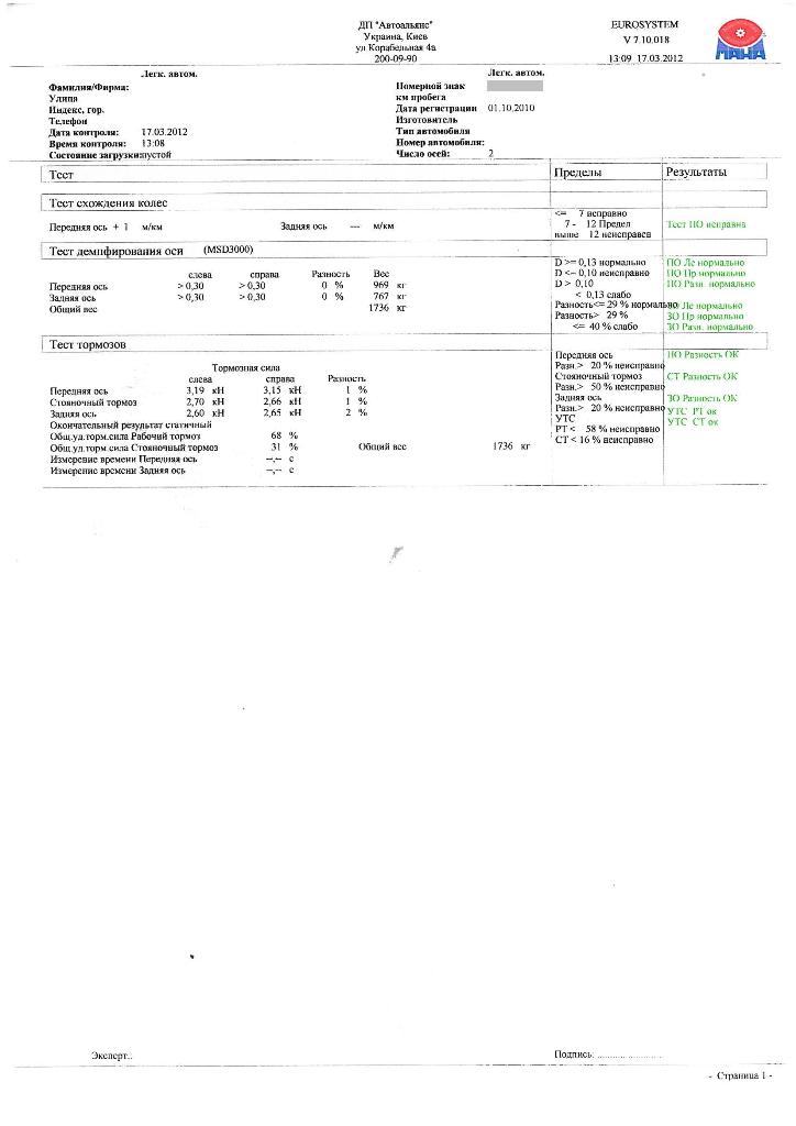 - Проверка аммортов и тормозной системы. В отличие от стенда на АТЛ, тут просто показывает градацию состояния, а не конкретный процент, что не так наглядно. Хотя информативность от этого не страдает.