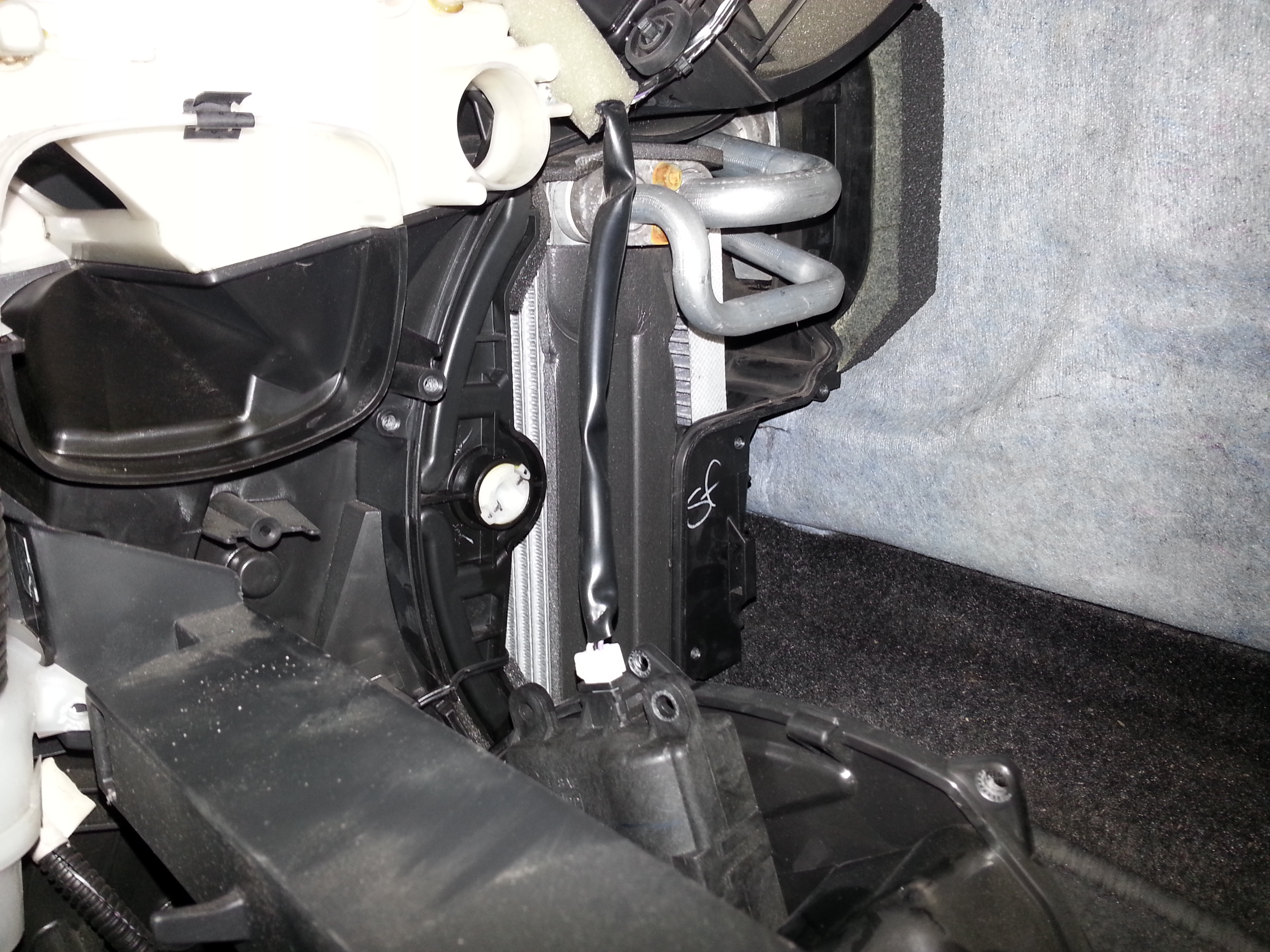 Трубки на самом деле не помеха. Нельзя его оттуда достать потому что он на половину закрыт корпусом печки. И дырку сделать нельзя, потому что на том месте петля, за которую цепляется пластиковая накладка салона.
