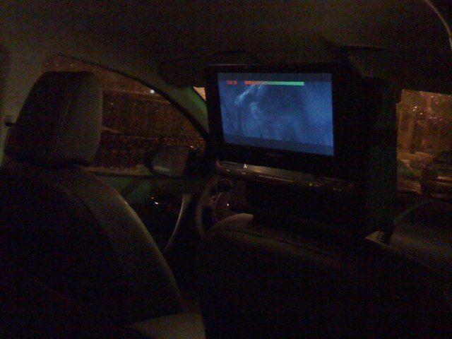 Леша! Ну ты даешь! У тебя там скоро будет передвижная медиа лаборатория! Однозначно зачет, здорово. Вопрос только в другом: по опыту установок подобных девайсов знаю точно, что удобней смотреть потолочный монитор, откинув голову на подголовник. При данном способе установки, при просмотре взрослому человеку приходится наклонять голову, поэтому быстро затекает шея. У детей подобной проблемы нет, вернее она появляется по мере взросления.