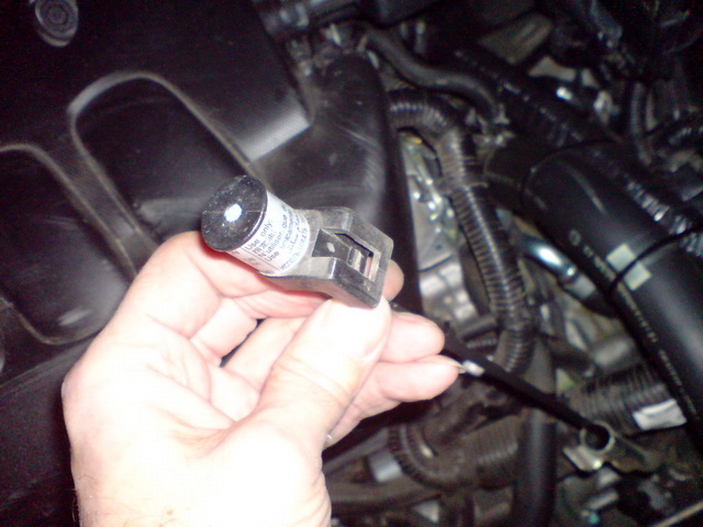 6. Вынимаем щуп контроля уровня масла,освободив защелку механизма головки щупа.