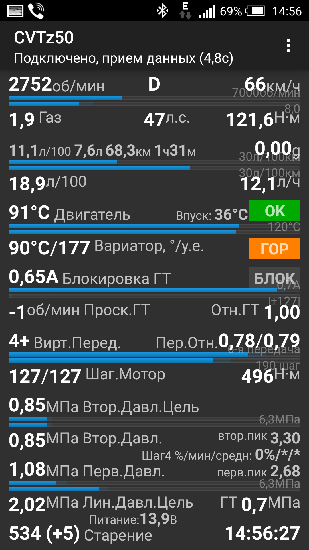Вот какие данные показывает программа CVTZ50 на моем Кашкае.