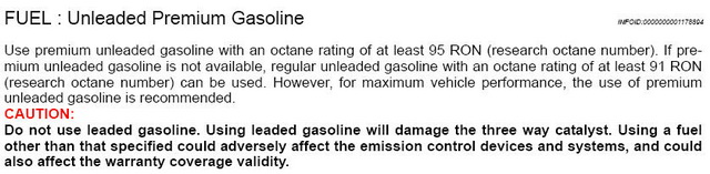 unleaded gasoline is not available, regular unleaded gasoline with an octane rating of at least 91 RON