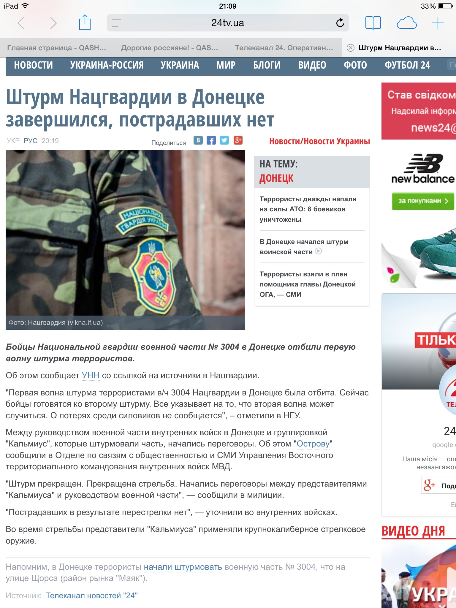 Шульга писал(а):только что штурмовали воинскую часть нацгвардии на Щорса в Донецке. автоматные очереди и взрывы слышно было минут 30 сейчас все стихло.