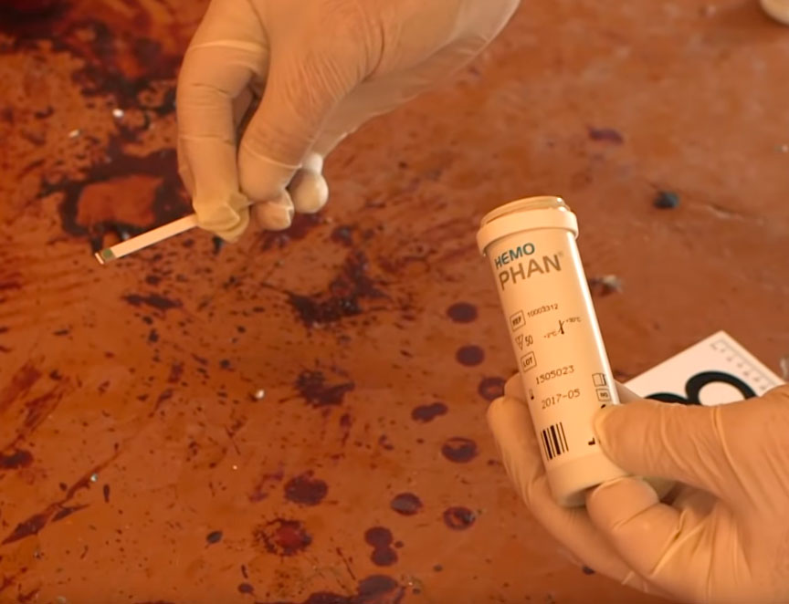 И про видео с тестом "HEMO PHAN" - ну совсем нехорошо получилось, выдергивать из его описание только то, что тебе нравится. Видно же, что видео выше снято для репортажа с места событий, это не рабочее видео экспертизы. Тест-полоской установили, что кровь - это кровь, и что дальнейшие анализы (а не след на полоске) будут передаваться на экспертизу. Для экспресс-определения крови этой тест-полоски вполне достаточно, чтобы не брать на анализ красную жижу вместо крови. Вот из твоего же описания: