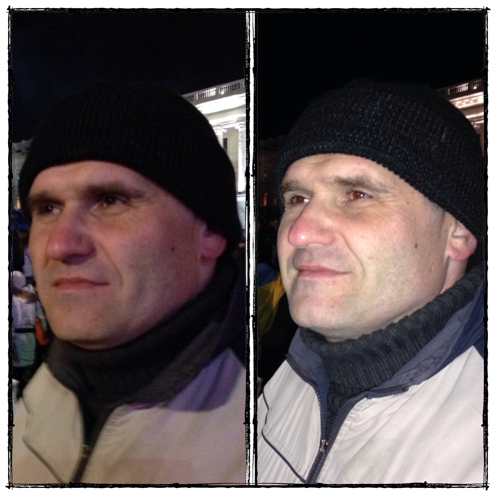 Й так , кого я побачив й знаю з невеликим коментарем: Мустафа Наєм - відомий журналіст ... Вікторія Сюмар - журналіст Володимир Вятрович - історик, призначений Ющенко директором архіву СБУ, активно пропагував на виборах 2010 не голосувати ні за кого . При особистій встрічі після виборів, я сказав йому - змити цю глупість зможеш лишень коли будеш стояти в перших рядах мітингувальників , яких буде трощити міліція, а не керувати здалеку. Три роки вже як луплять - його , ще при роздачі не бачив. Далі йдуть люди , яких би я відніс до категорії "ніякої політики" - Ігор Луценко - кандидат в нардепи на минулих виборах, знявся по 223 , як він заявив , для того, щоб йшов єдиний кандидат від ОО, відсидів 5 діб адмінки від злочинної влади, пресс-секретарем міністра економіки Василя Цушка він був. Ярослав Діденко - йшов , здається по округу кандидата від ОО Ємця, не знімався, запам'ятався дорогою рекламою й полум'яними опозиційними гаслами, а ще розсмішив тим , що назвав себе організатором мовних протестів. Гацько й Панов Максим - представники Демальянсу, познайомився з ними через ФБ , де мої друзі з "Республіки" ( Володя Чемерис, Михайло Лебідь) звинувачували вищевказаних громадян в співпраці з владою в протягуванні Закону "Про мирні зібрання". Руслан Секела - побачив його декілька років назад - відкривав -закривав дверцята для тої ж Наталії Королевської, останнім часом почав з'являтися на протестних акціях - така собі людина-організація, він же й голова, він же й єдиний член. Інших не знаю, окрім Руслани.
