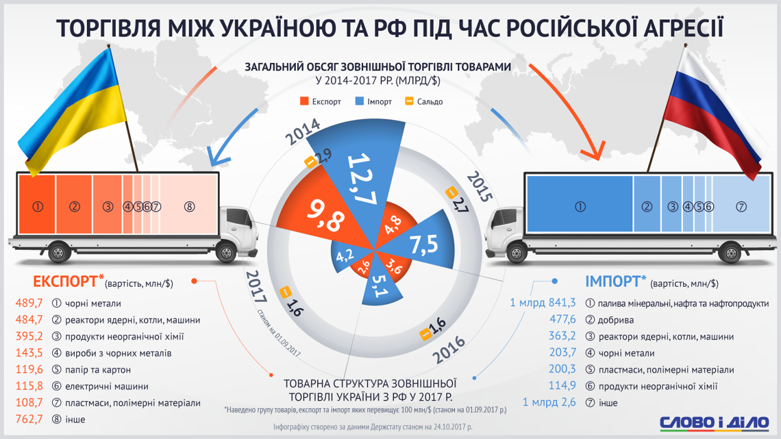 Torpedo писал(а):Согласно подсчетам НБУ, Украина за 11 месяцев 2017 года нарастила товарооборот с Россией на 28,6%. В то время как с ЕС — на 27,6%