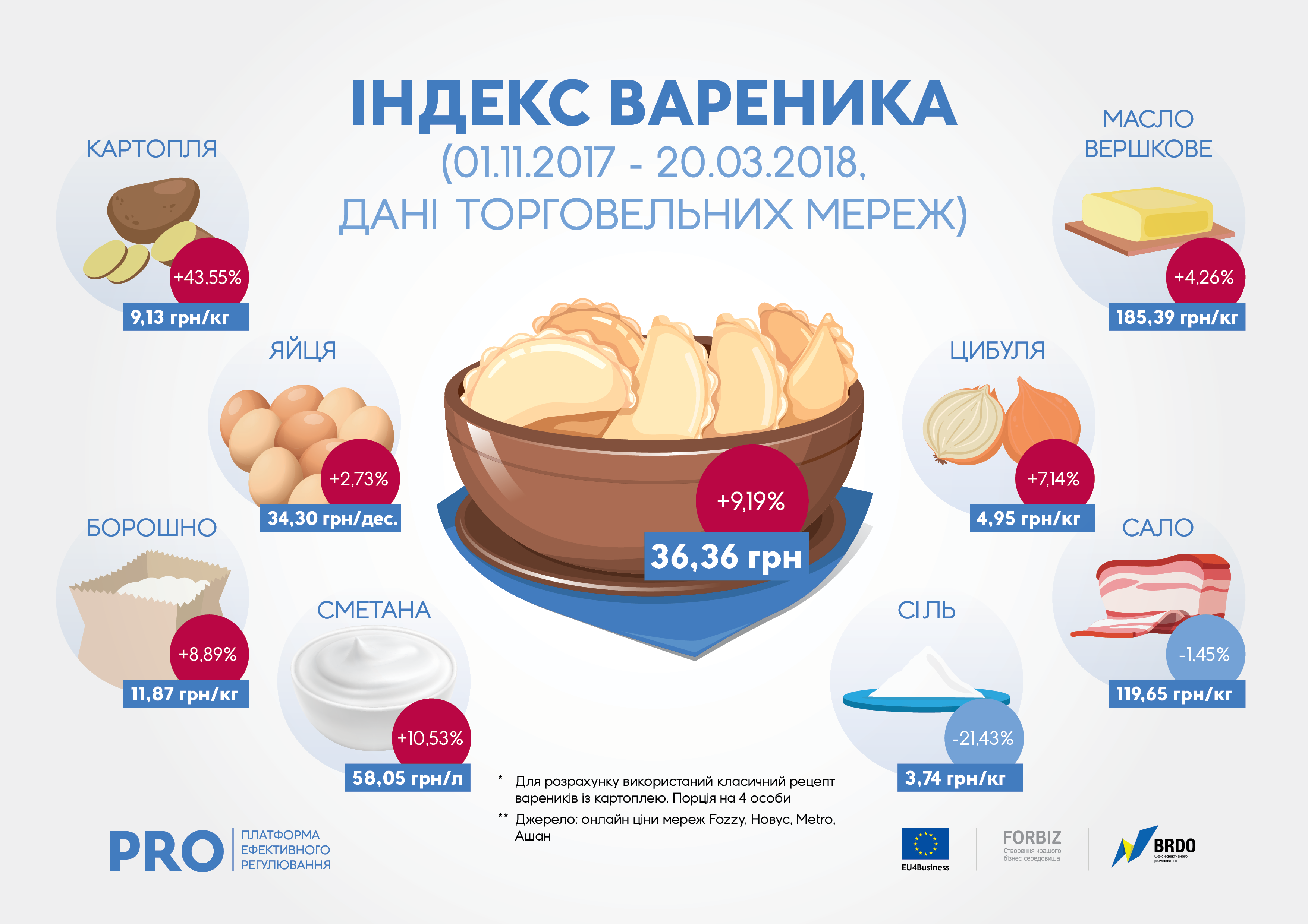 ... порція на 4 особи буде коштувати 36,36 гривень. До цієї вартості увійшли такі продукти, як борошно, картопля, вершкове масло, цибуля, сало та сіль.
