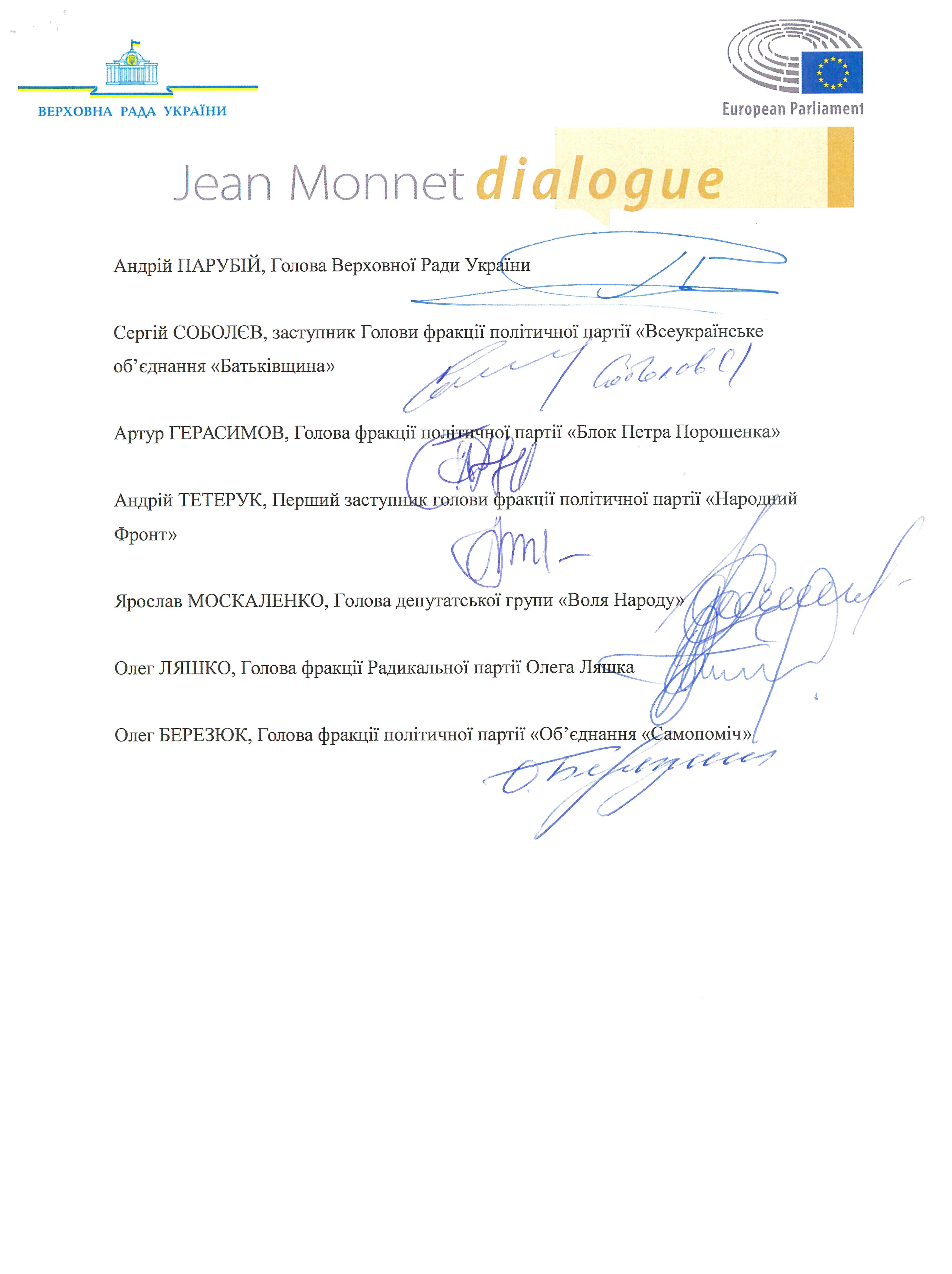 У підсумковому документі також йдеться, що учасники мали довгі, відверті та конструктивні перемовини стосовно законопроектів про виборчу реформу та створення Вищого антикорупційного суду.
