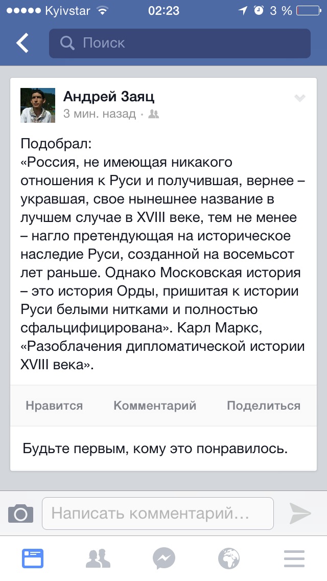 Ясновельможний пан Kostya , глибоко шануючи Ваші пізнання Маркса і Книги одкровення Іоана Богослова , і схиляючись перед Вашому проникнення в них , залишаюся в подиві у загадці : який з попередніх Вашому моїх постів навів Вас на настільки великі повчання в мою адресу. З вдячністю йду вивчати згадане.