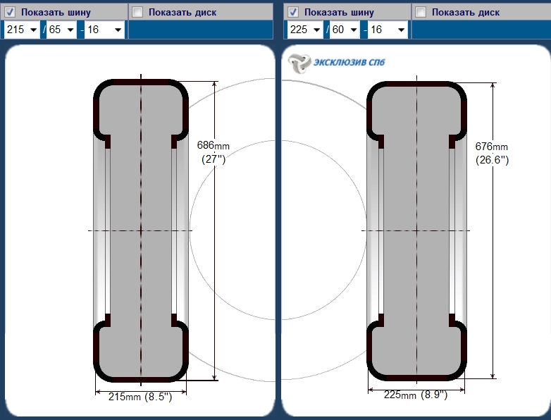 Сравнивал несколько Кашкаев на резине R16 215/65 и свой на R16 215/70 - последний вариант мне нравится больше