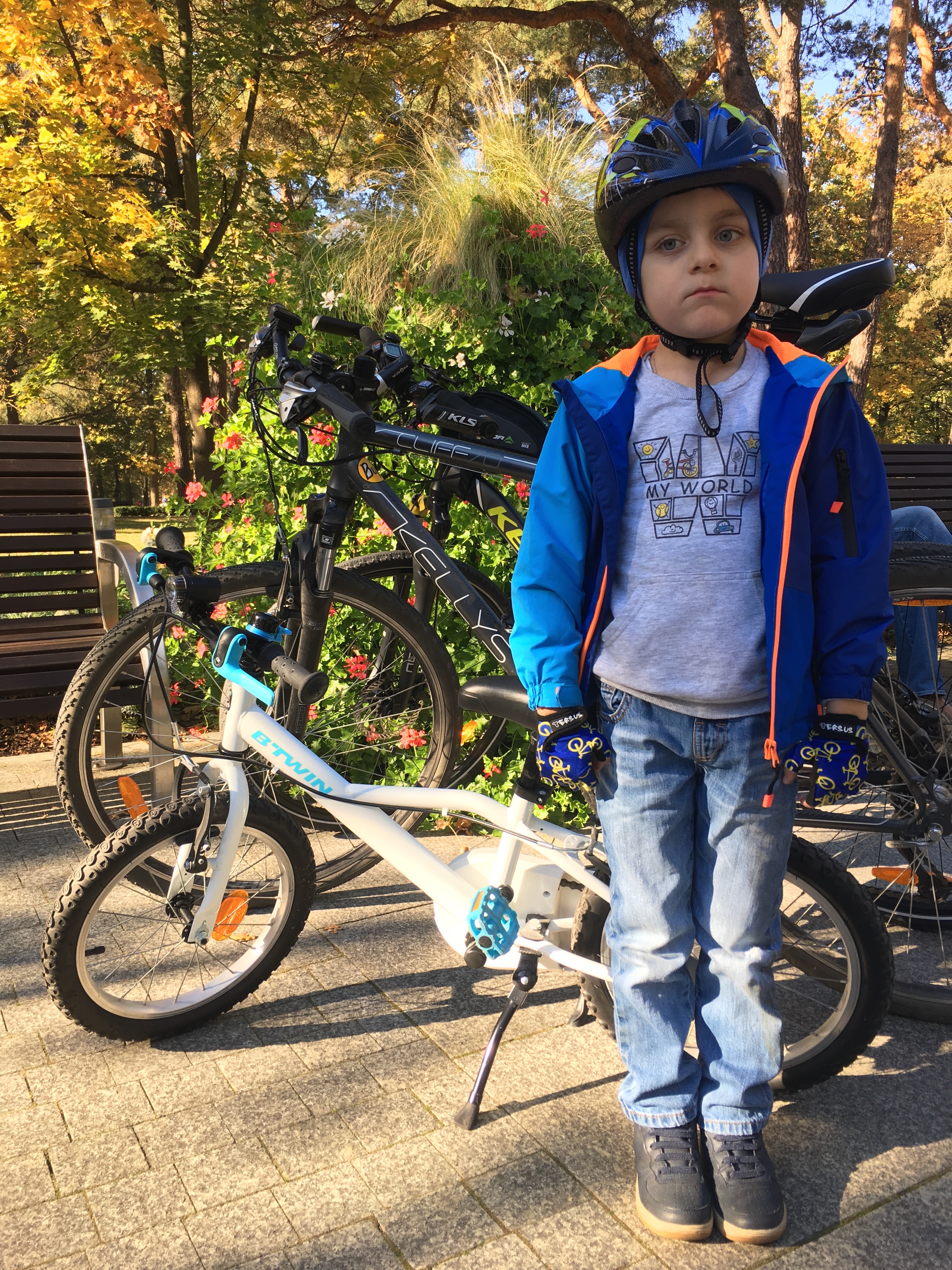 Сьогодні із ним вперше гайнули на роверову вичечку до парку. Правда, трохи впав на початку, але підвввся та поіхав наполегливо далі. В парку до нас доєднався старший, на оратній дорозі вони вже летіли навипередки. Отже, дрібнота записала перші 7 км на власний велорахунок.