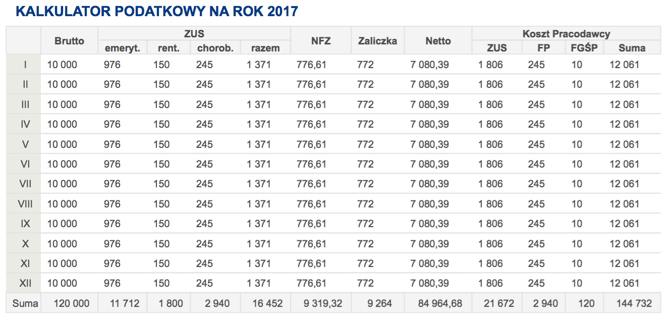 Розмір цього внеску домить суттєвий, не буду детально розписувати, бо в мережі достатньо калькуряторів та повних пояснень, з яких фондів він складається. Наведу лише приклад, аби розуміли сутніть прогресивного податку в Польші та розміру податку, який йде виключно на пенсії та медичне обслуговування. Навіть 2 приклади - для ЗП 10000 злотих та 15000 злотих (хоча, звичайно, це досить високі ЗП для країни).