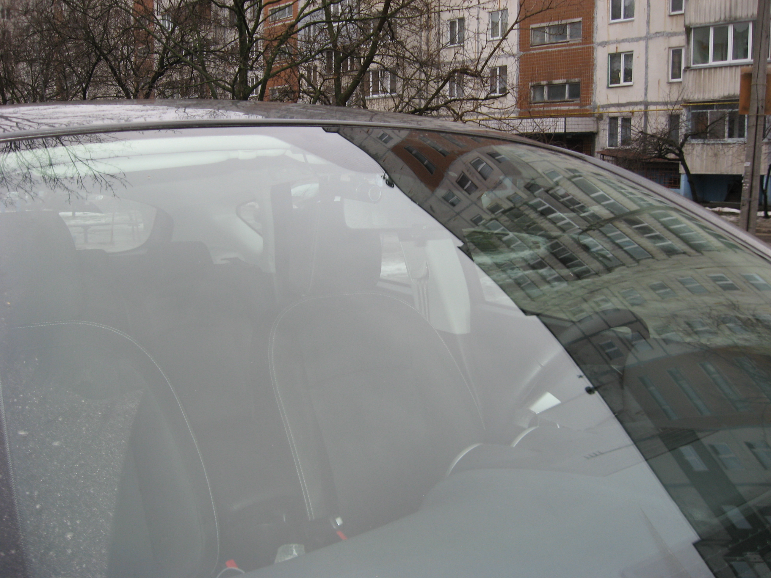 со стороны лобового стекла защелки держатся получше, давим отверткой на белый пластик стойки от пассажирской двери к лобовому стеклу: