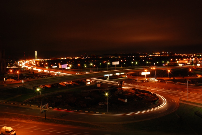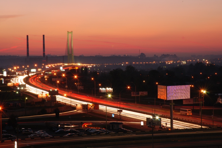 А вот работа моей жены - вид на Южный мост и метро Осокорки.