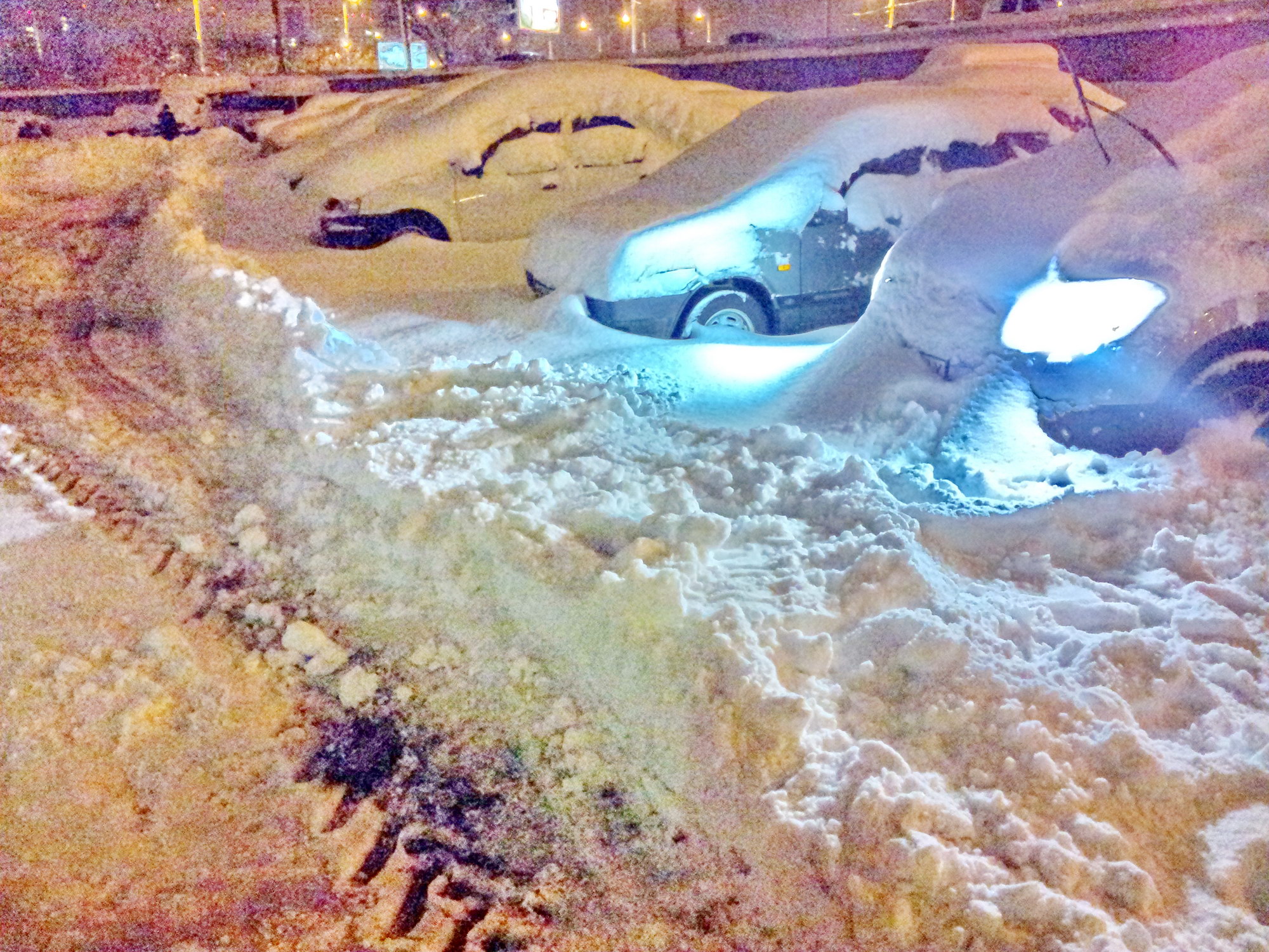 Опасные навесы на заднем плане, могут и рухнуть под тяжестью снега. Прямо на стоящие под ними машины.