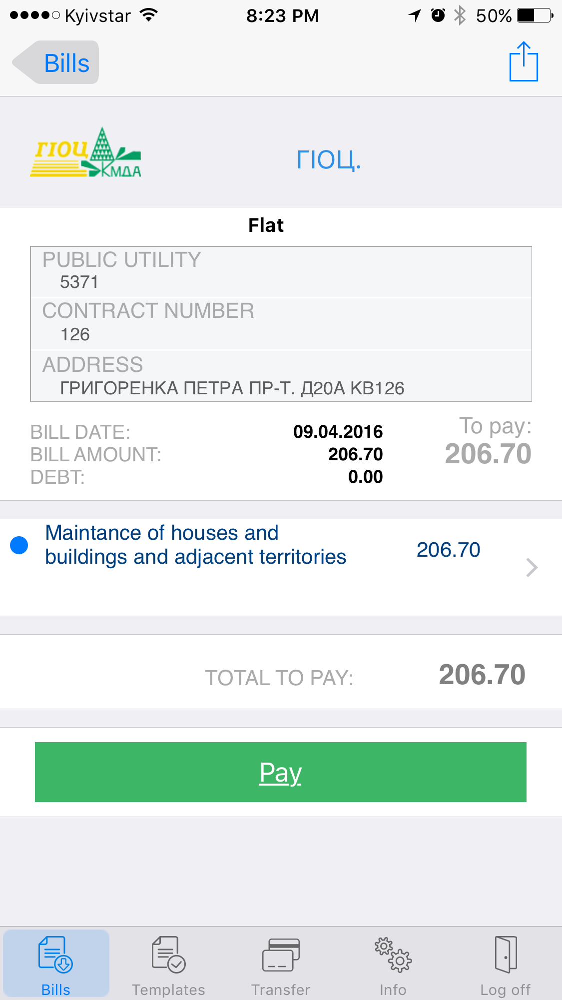 206 - это квартплата. Тариф у нас 3 грн./квадрат, что тоже странным образом ниже согласованных с КМДА 4,17...