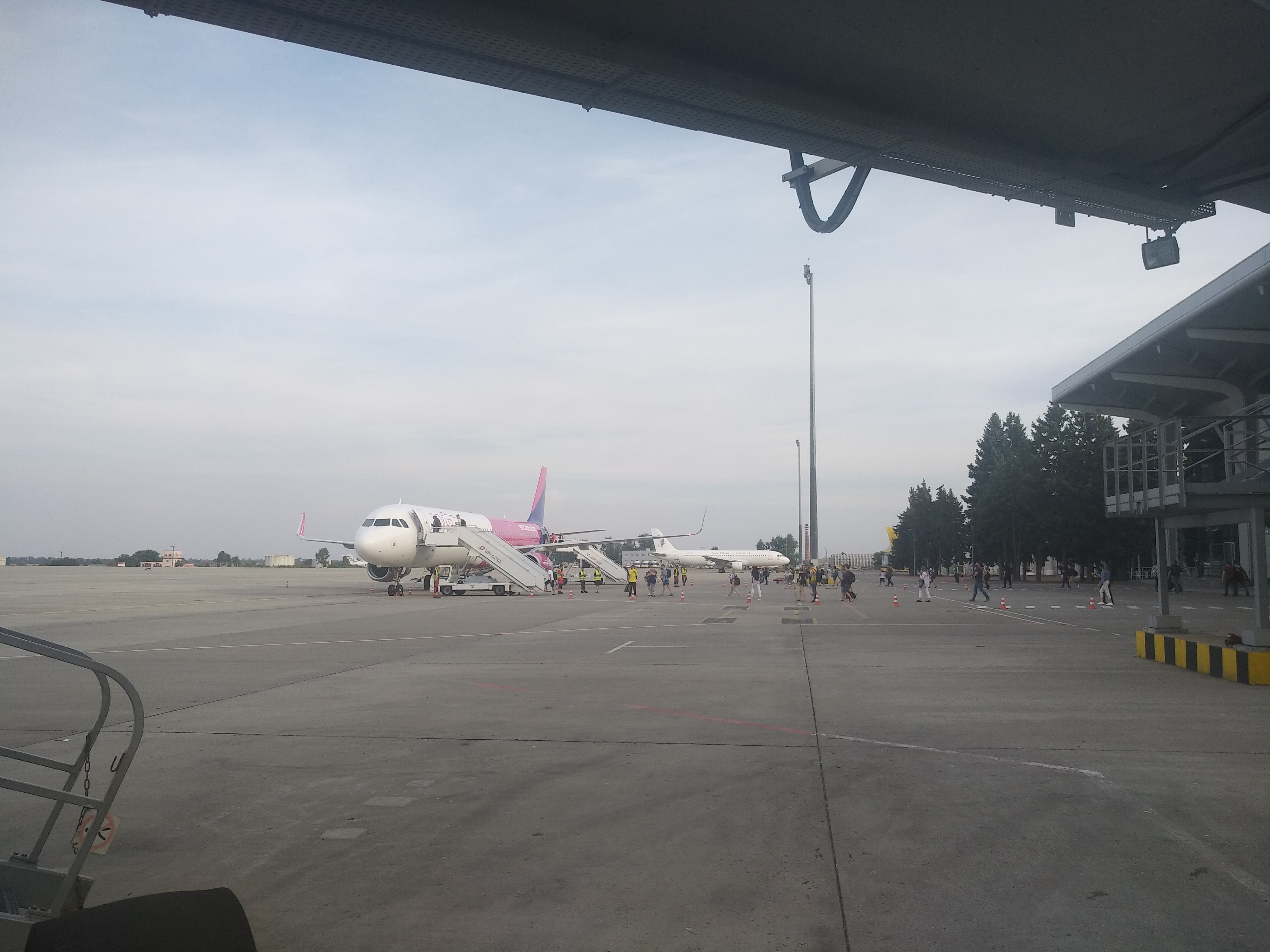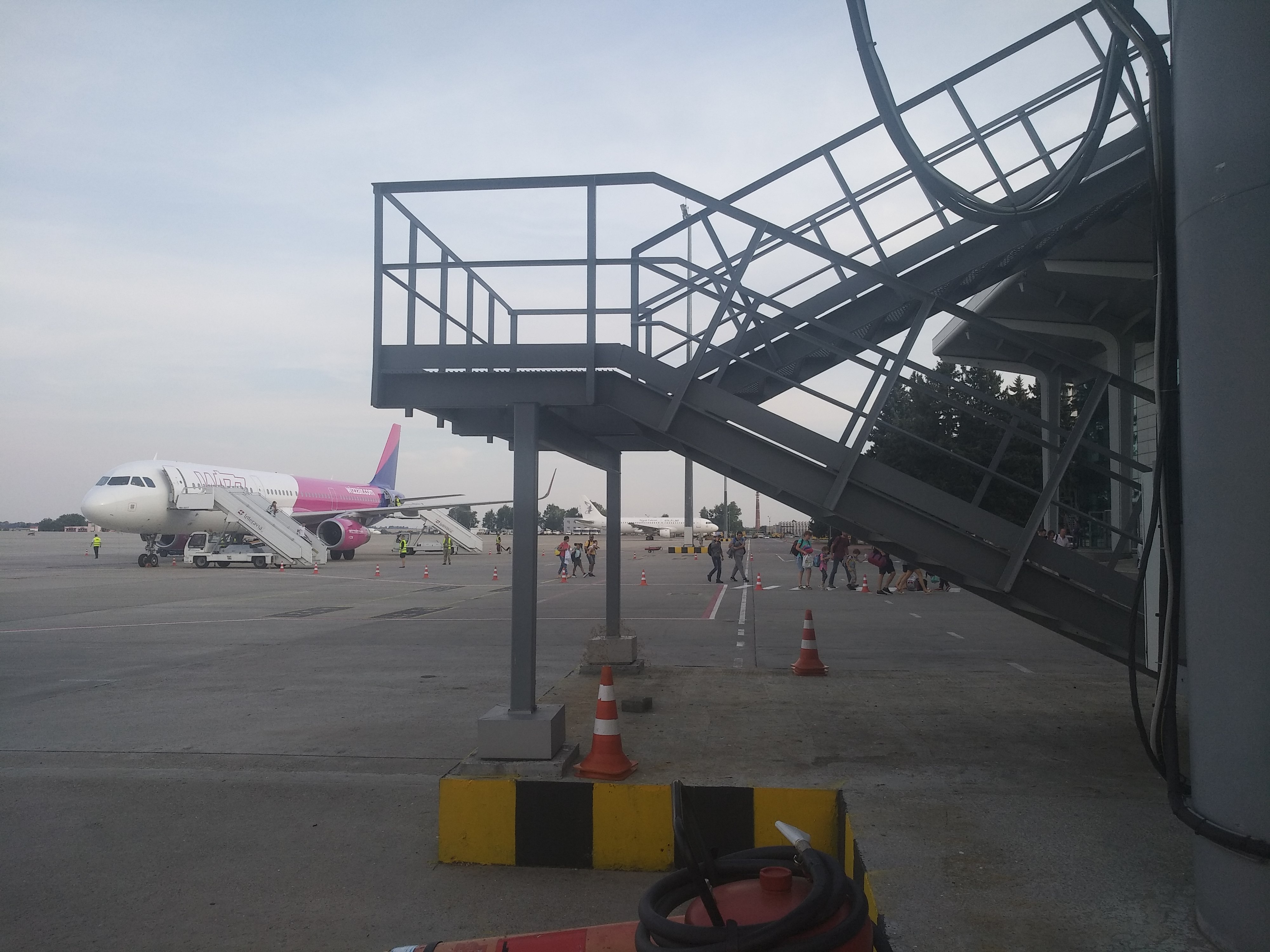 Стоим рядом, наших паксов - прямо в самолёт по рукаву, а ихних - по рукаву вниз на перрон и по трапу в арбуз...
