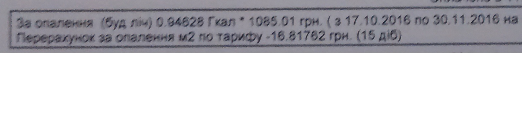 Пришла платёжка за отопление за декабрь. В счёте выставили 11,3 грн/1 кв. м. Итого к оплате имеем 35,482 % от установленного тарифа.