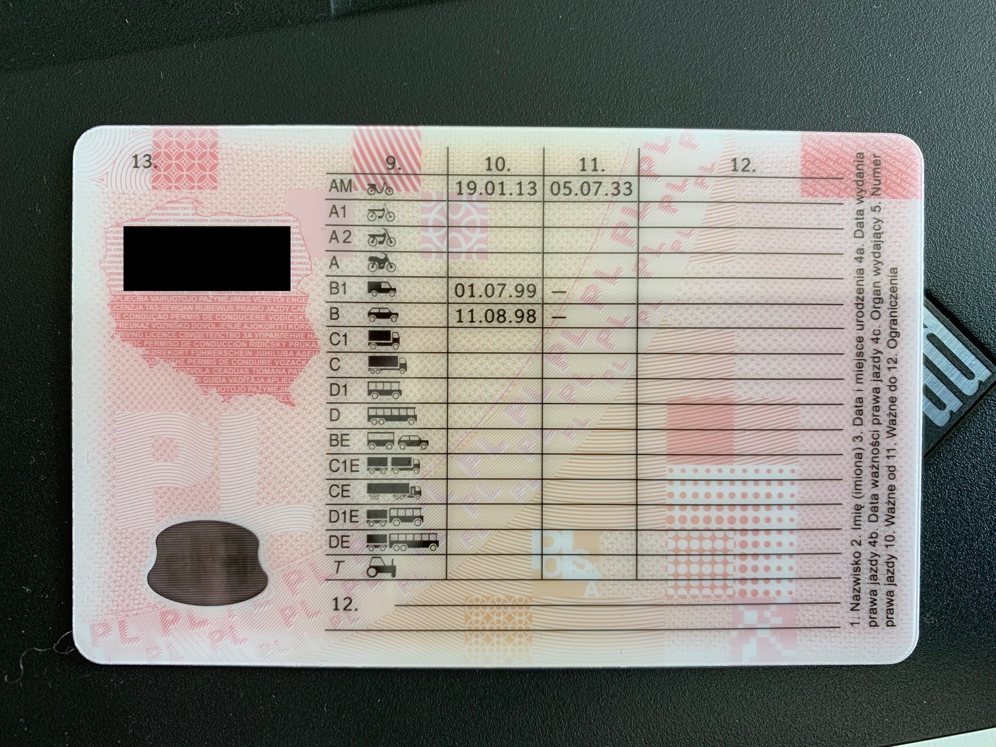 Airman Ну, вот мои польские права так выглядят. Мне в них почему-то на велик права открыли, а В1 с потолка от 01.07.99. Зато бессрочно! Права имеют срок действия, но по истечении просто продлеваются в моём случае на следующие 15 лет.