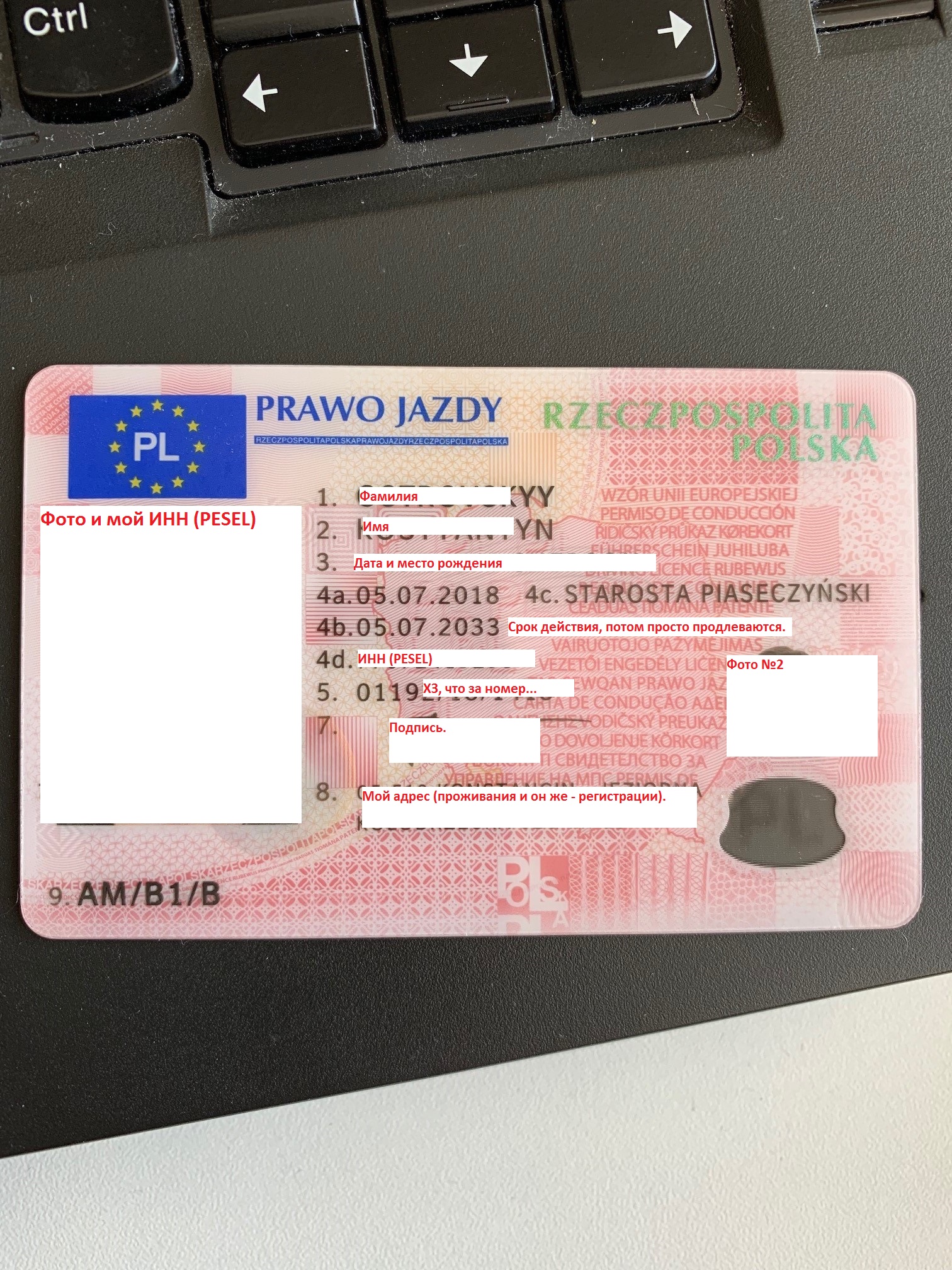 В моих польских правах есть адрес проживания/регистрации. И даже мой ИНН есть. И вообще, тут хотят разрешить ездить даже без прав, но с наличием любого иного удостоверения личности. О как!